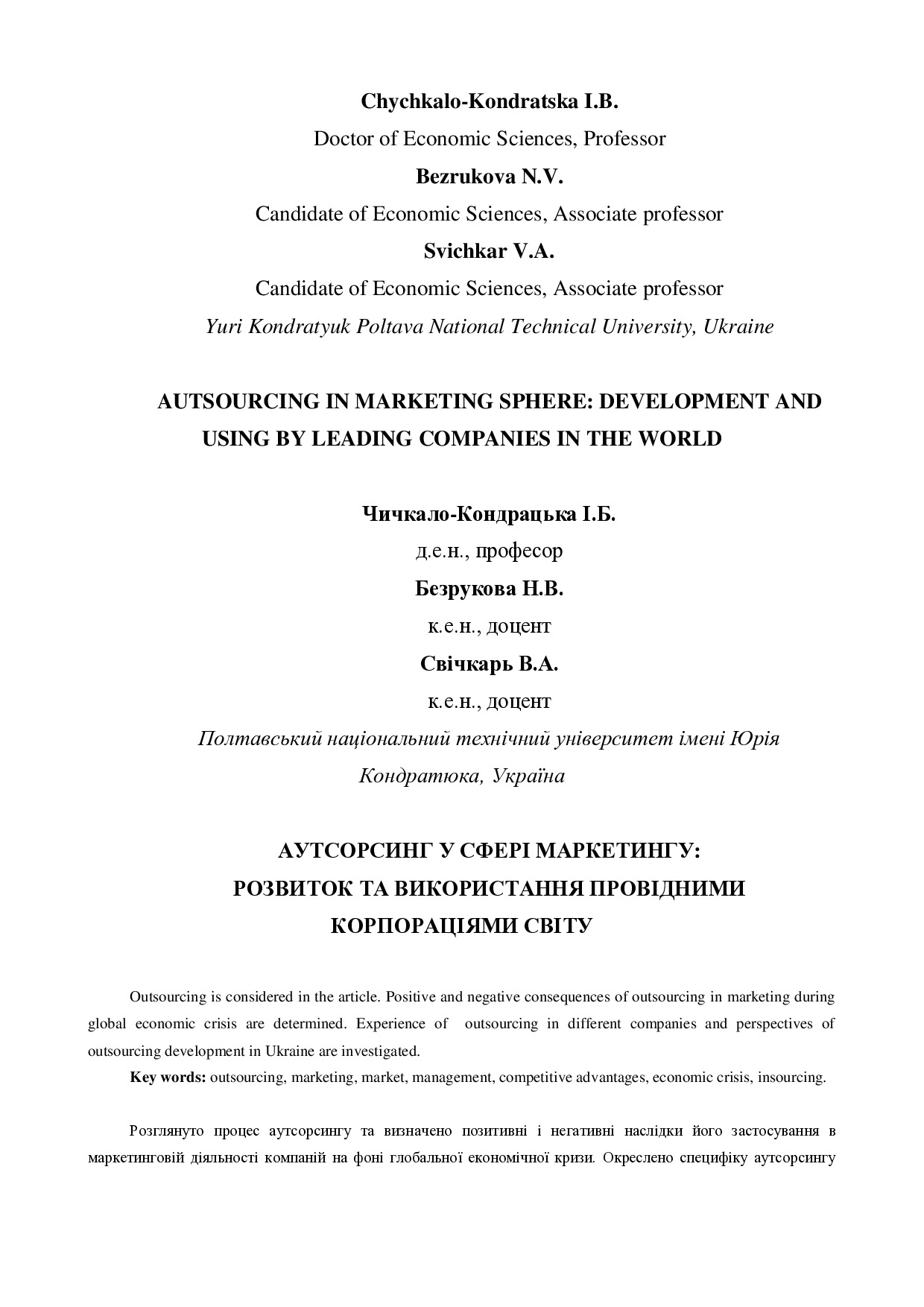 Аутсорсинг у сфері маркетингу: розвиток та використання провідними корпораціями світу