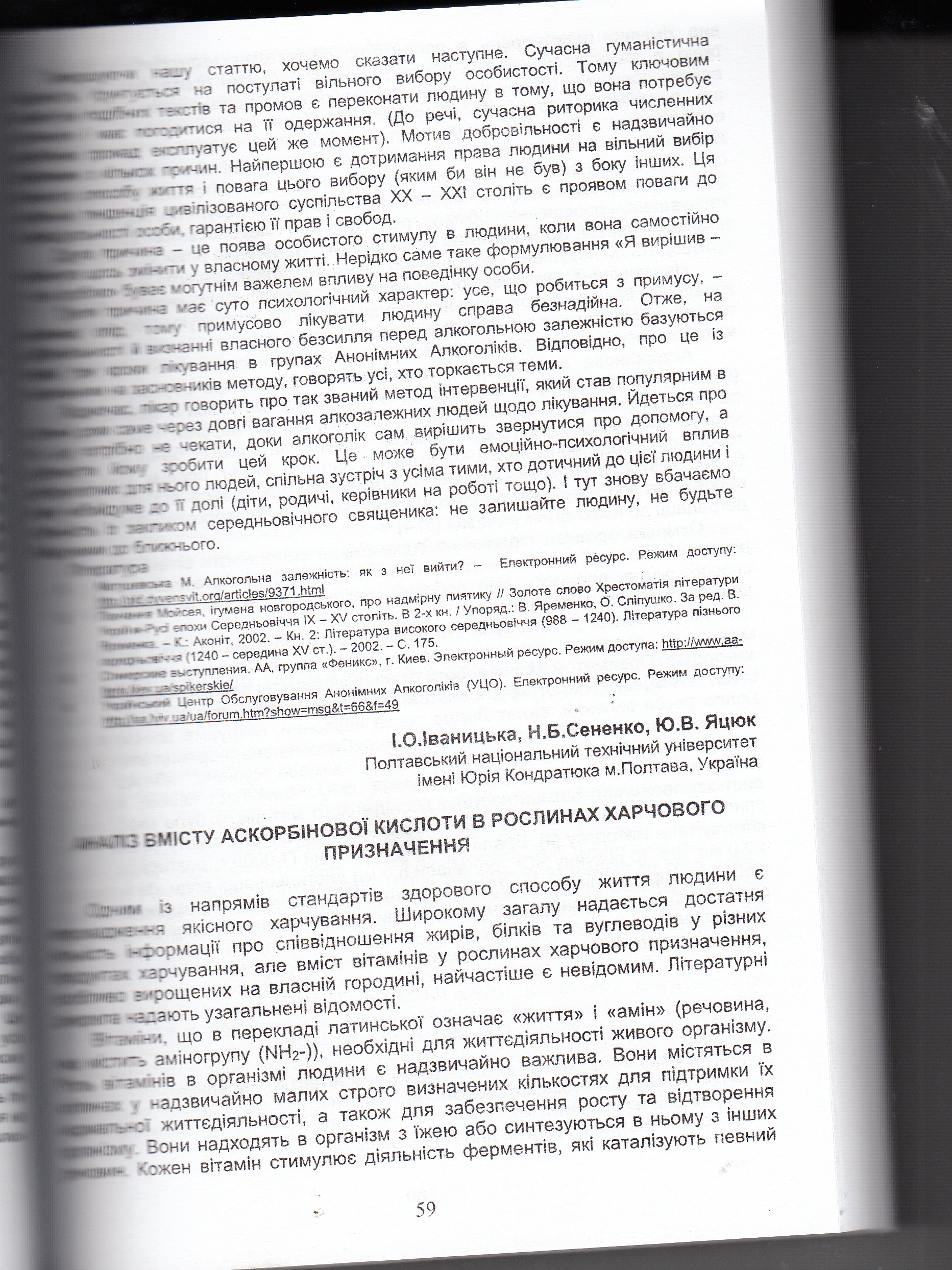 Аналіз вмісту аскорбінової кислоти у продуктах рослинного походження