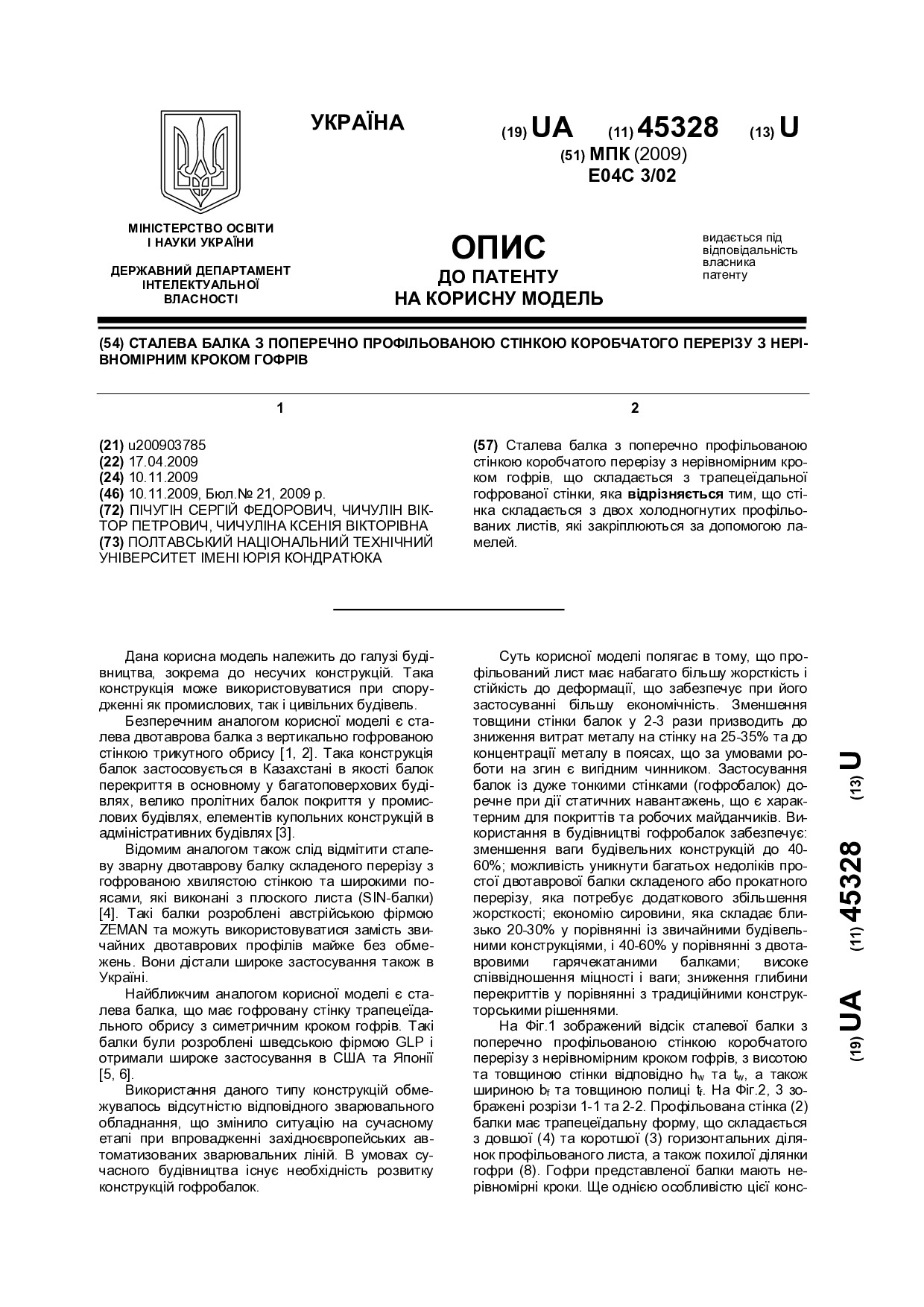 Сталева балка з поперечно профільованою стінкою коробчастого перерізу з нерівномірним кроком гофрів