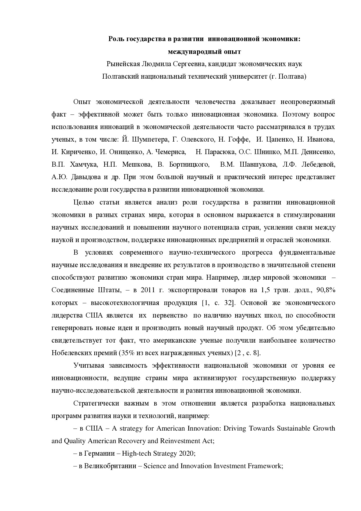 Роль государства в развитии инновационной экономики: международный опыт