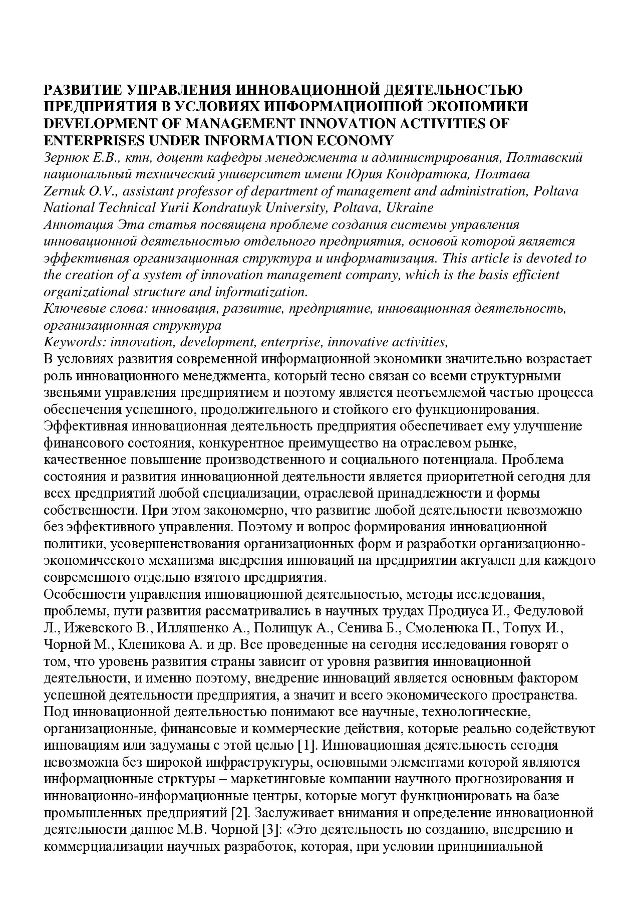 Развитие управления инновационной деятельностью предприятия в условиях информационной экономики