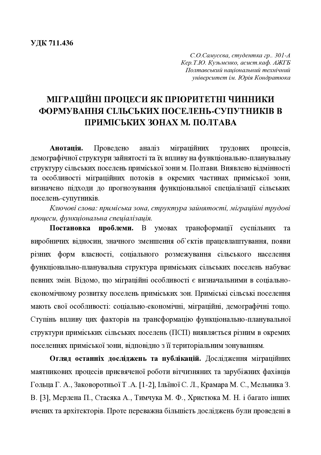 Міграційні процеси як пріоритетні чинники формування сільських поселень-супутників в приміських зонах м. Полтава