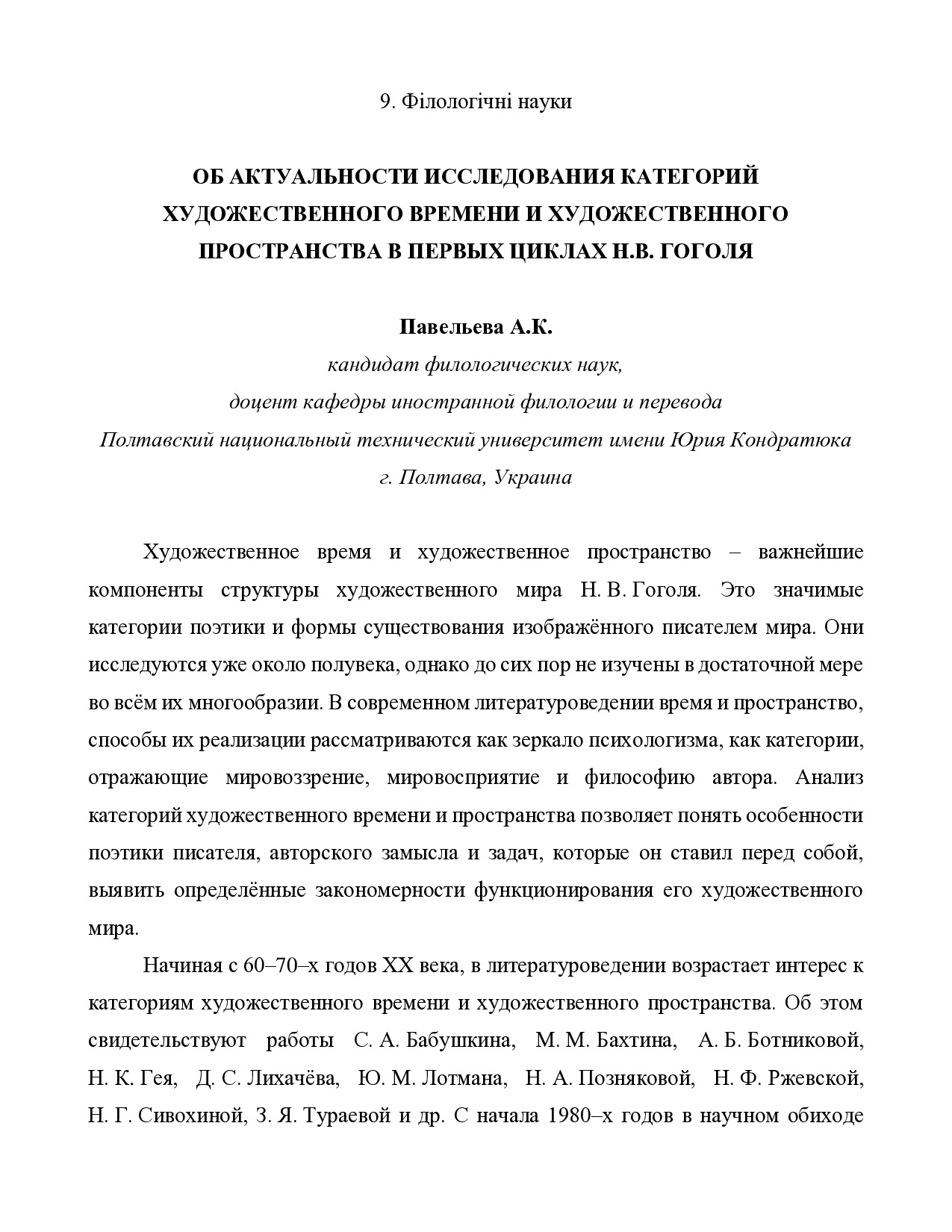 Об актуальности исследования категорий художественного времени и художественного пространства в первых циклах Н.В. Гоголя