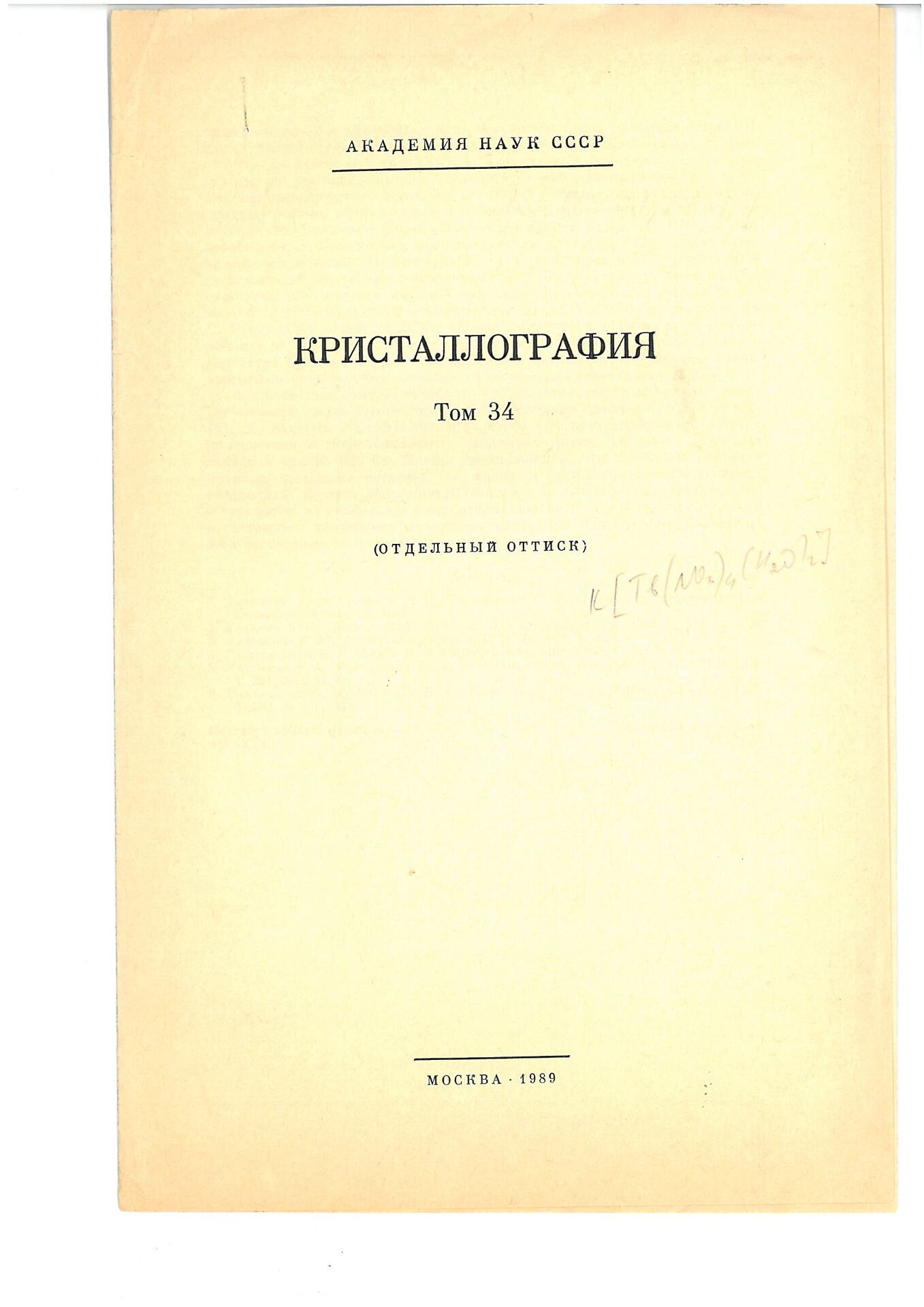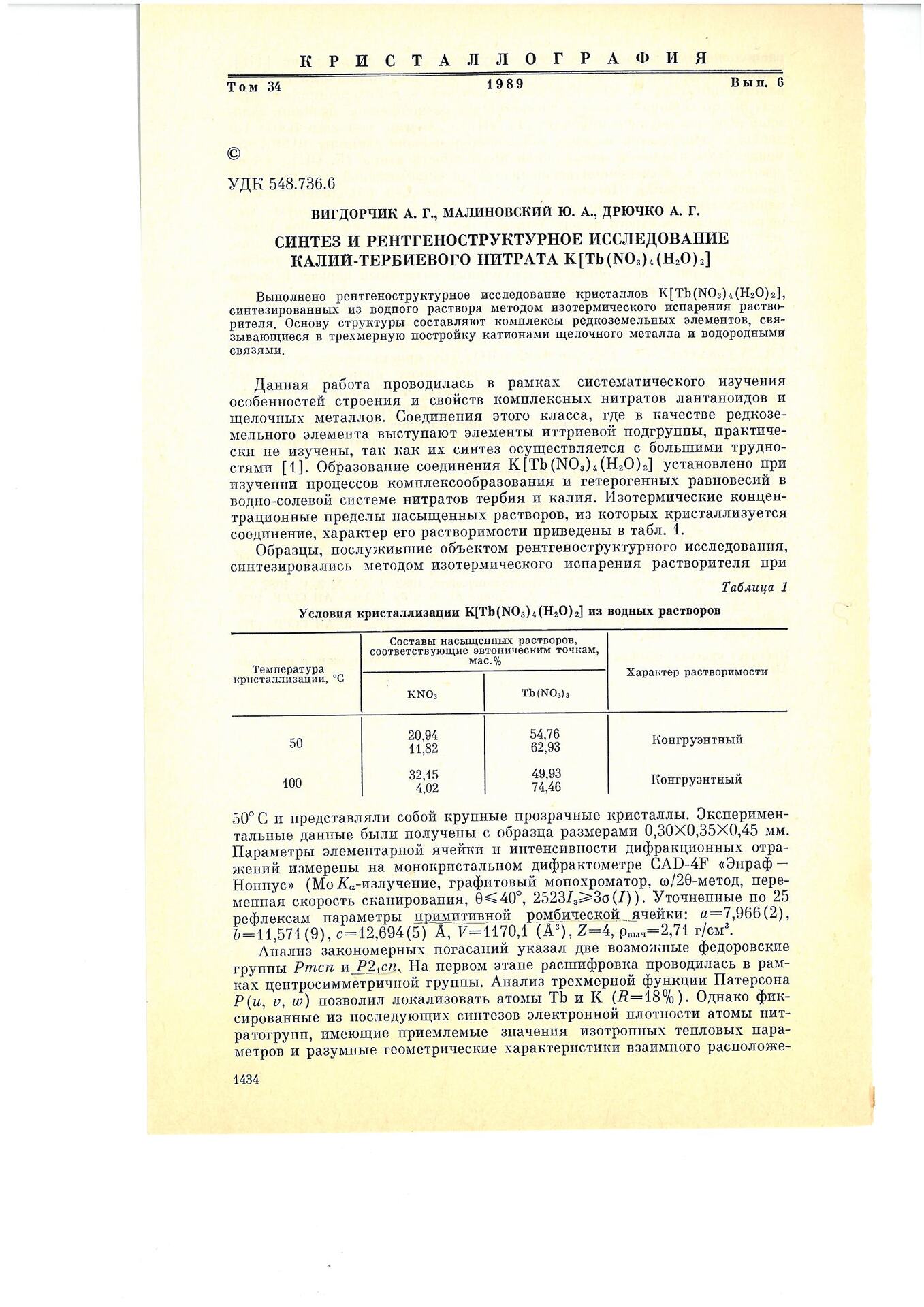 Синтез и рентгеноструктурное исследование калий-тербиевого нитрата K[Tb(NO3)4 (H2O)2]