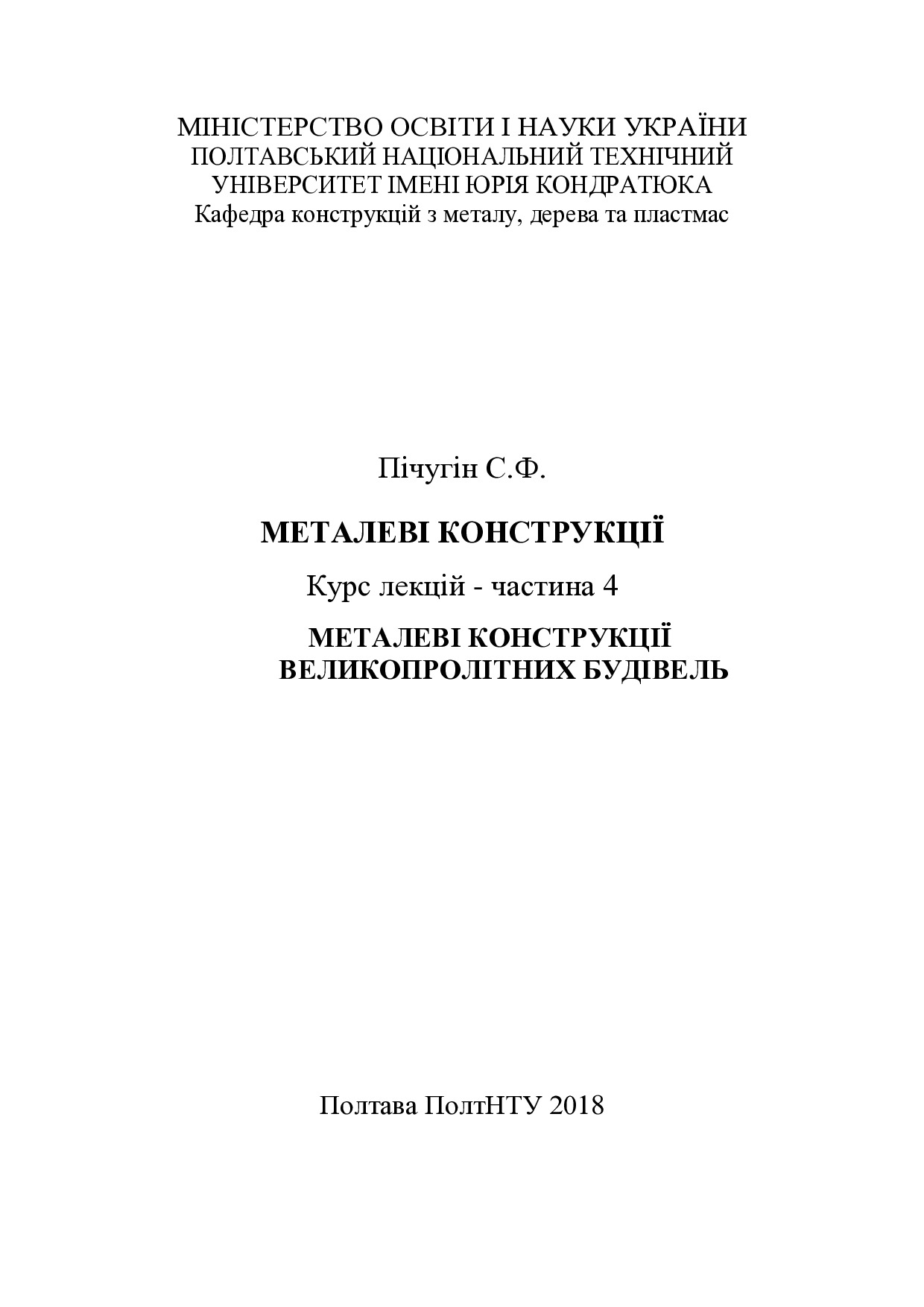Металеві конструкції: курс лекцій. Ч. 4: Металеві конструкції великопролітних будівель