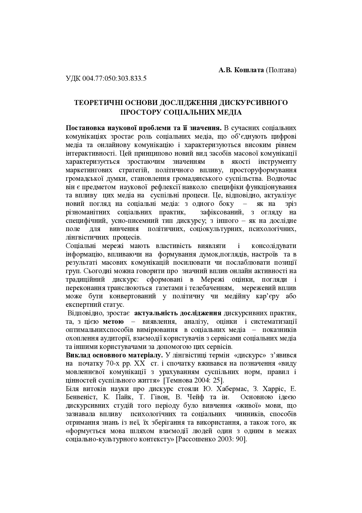 Теоретичні основи дослідження дискурсивного простору соціальних медіа