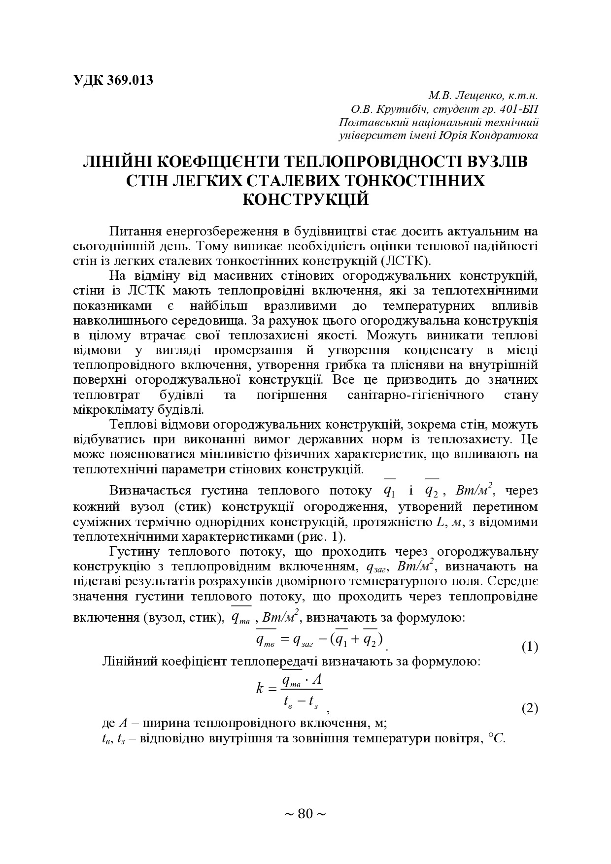 Лінійні коефіцієнти теплопровідності вузлів стін легких сталевих тонкостінних конструкцій