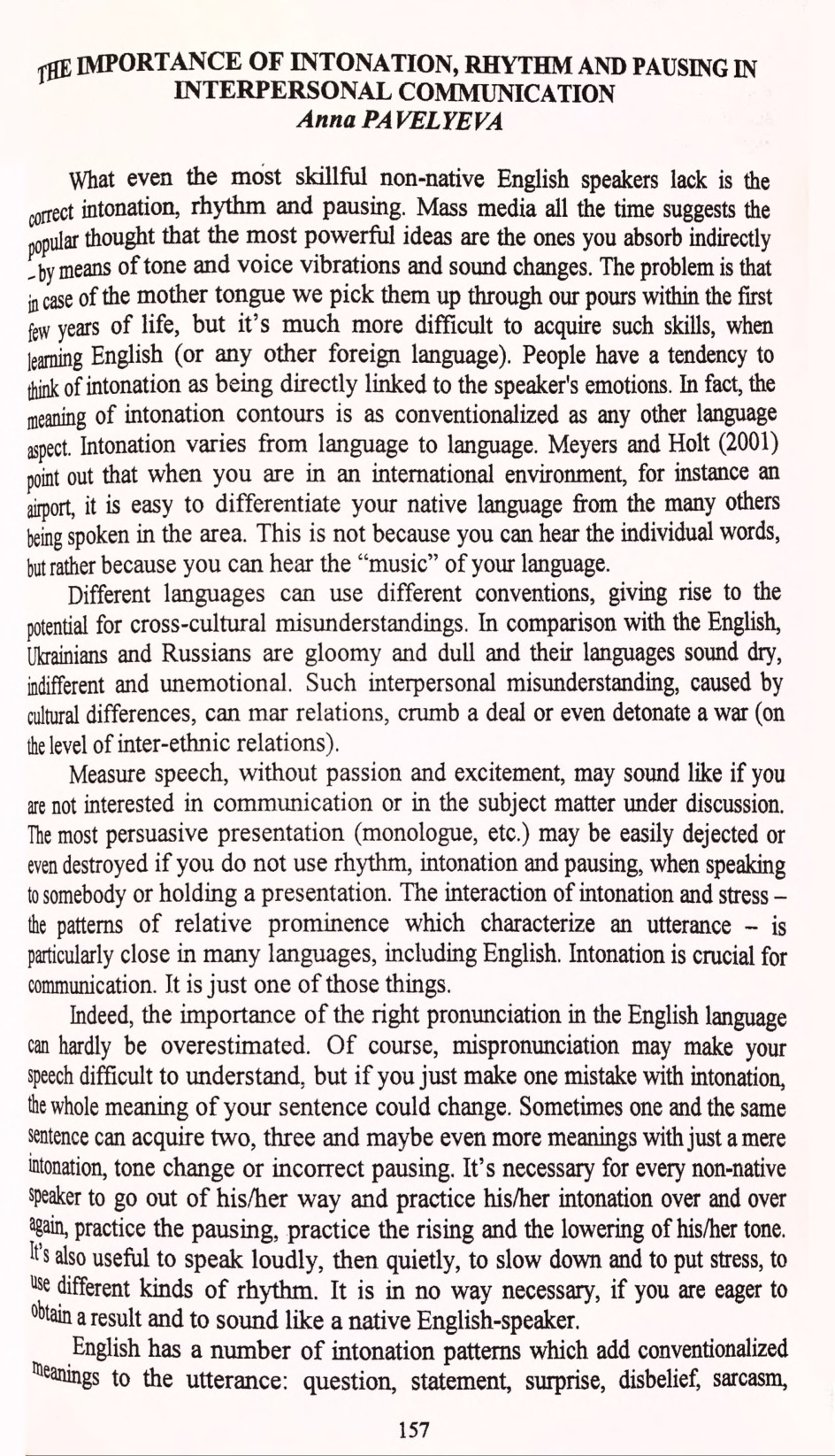 The Importance of Intonation, Rhythm and Pausing in Interpersonal Communication