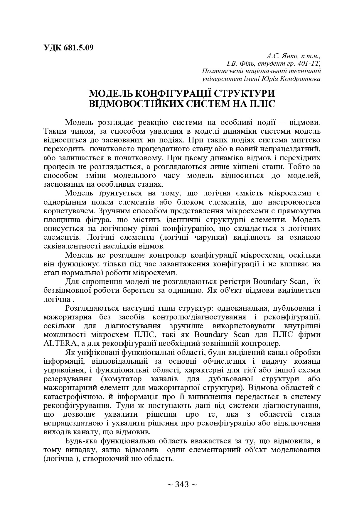 Модель конфігурації структури відмовостійких систем на ПЛІС