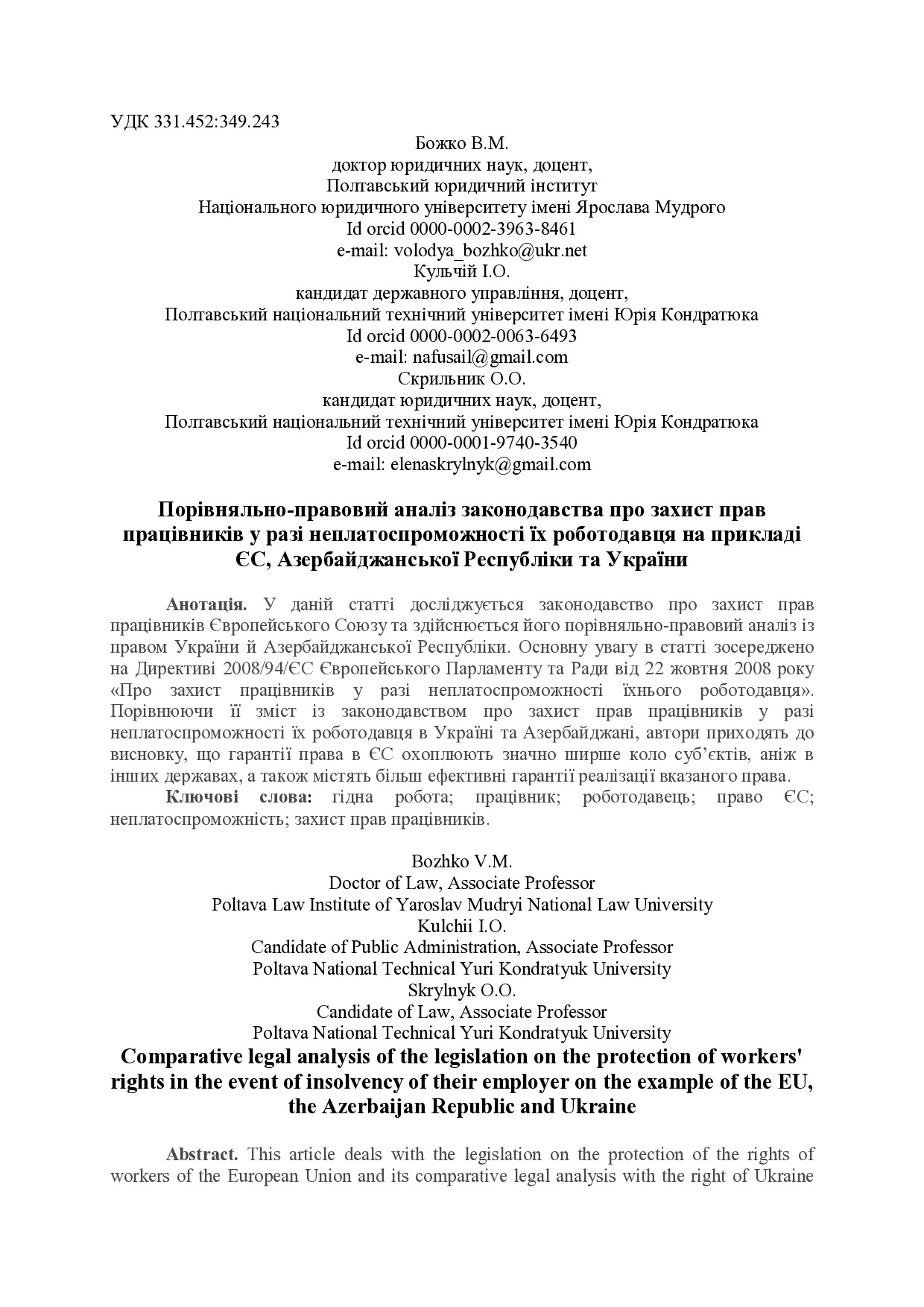 Порівняльно-правовий аналіз законодавства про захист прав працівників у разі неплатоспроможності їх роботодавця на прикладі ЄС, Азербайджанської республіки та України