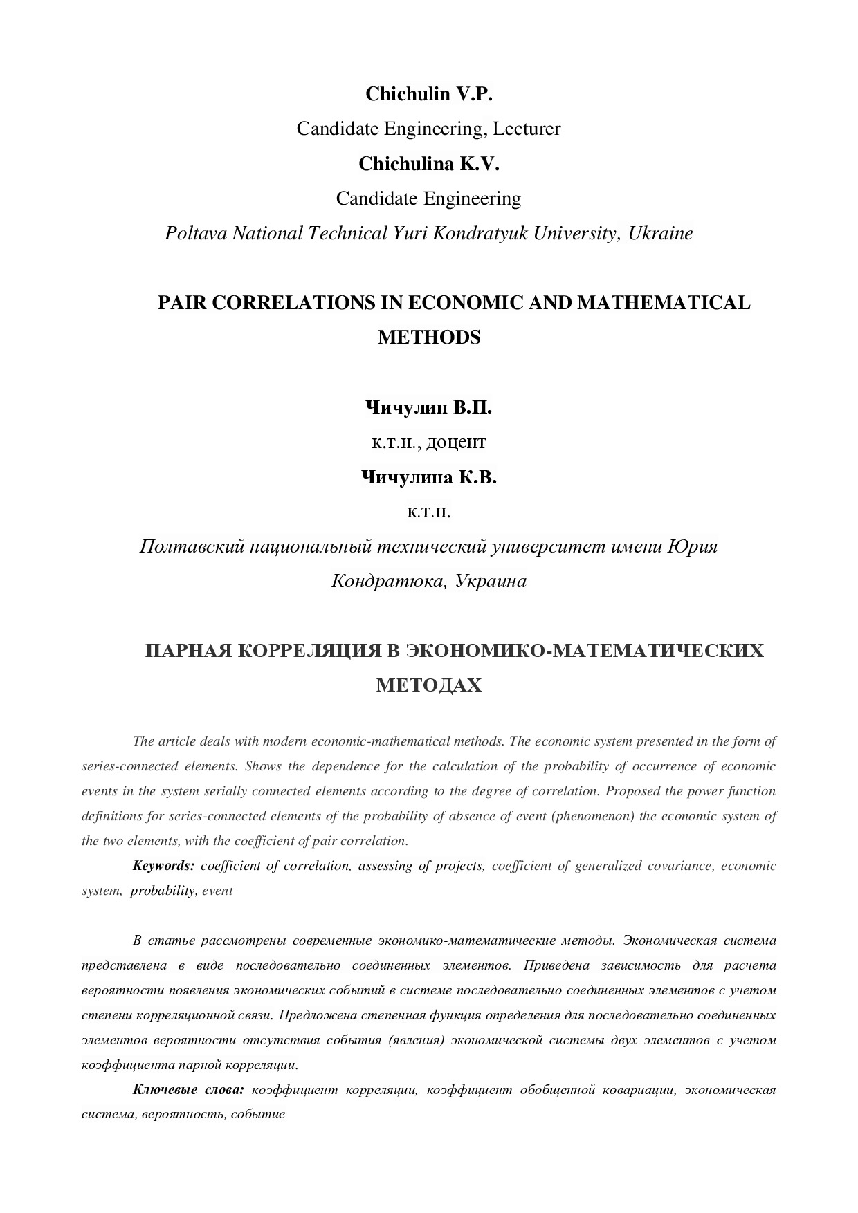 Парная корреляция в економико-математических методах
