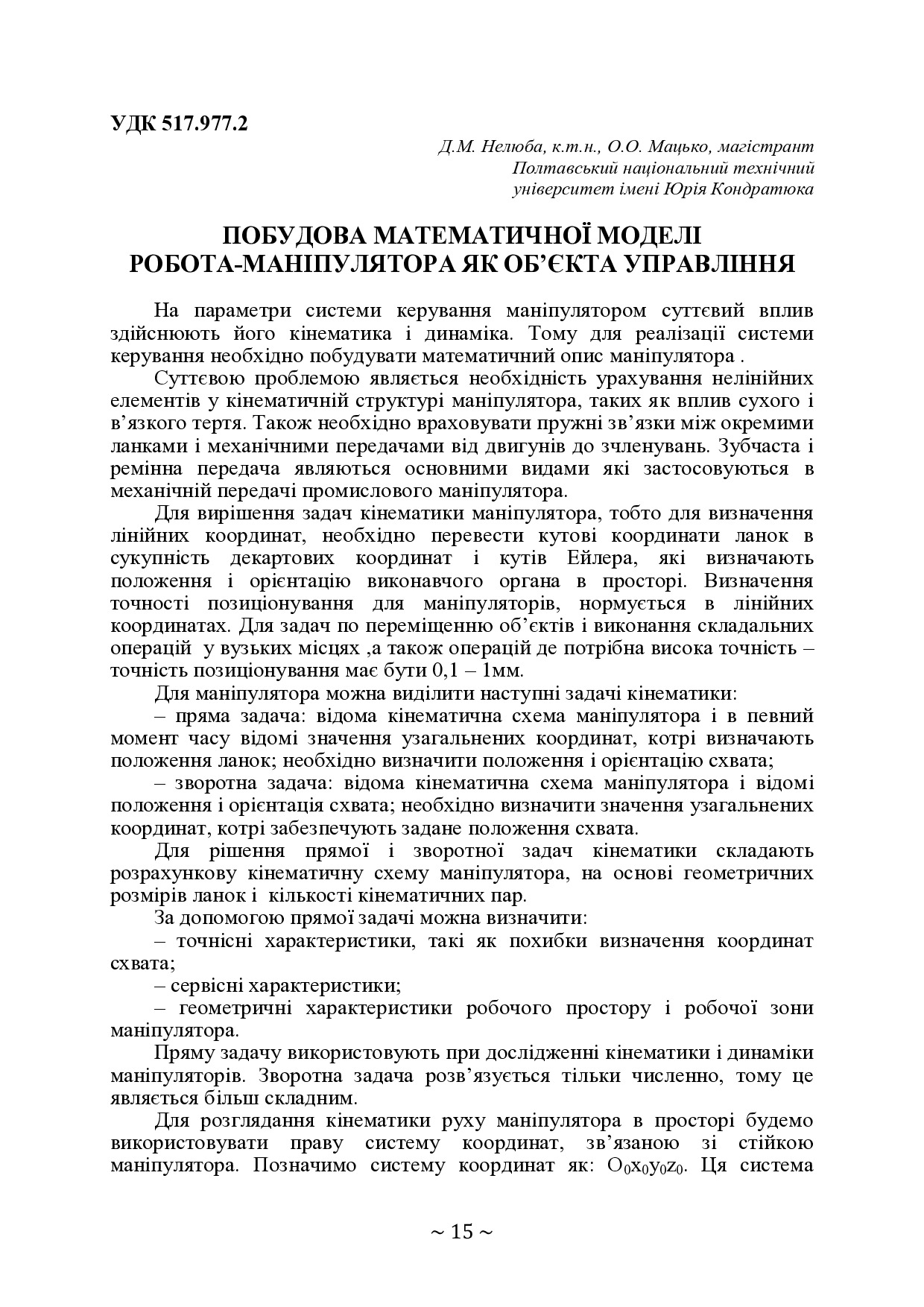 Побудова математичної моделі робота-маніпулятора як об'єкта управління