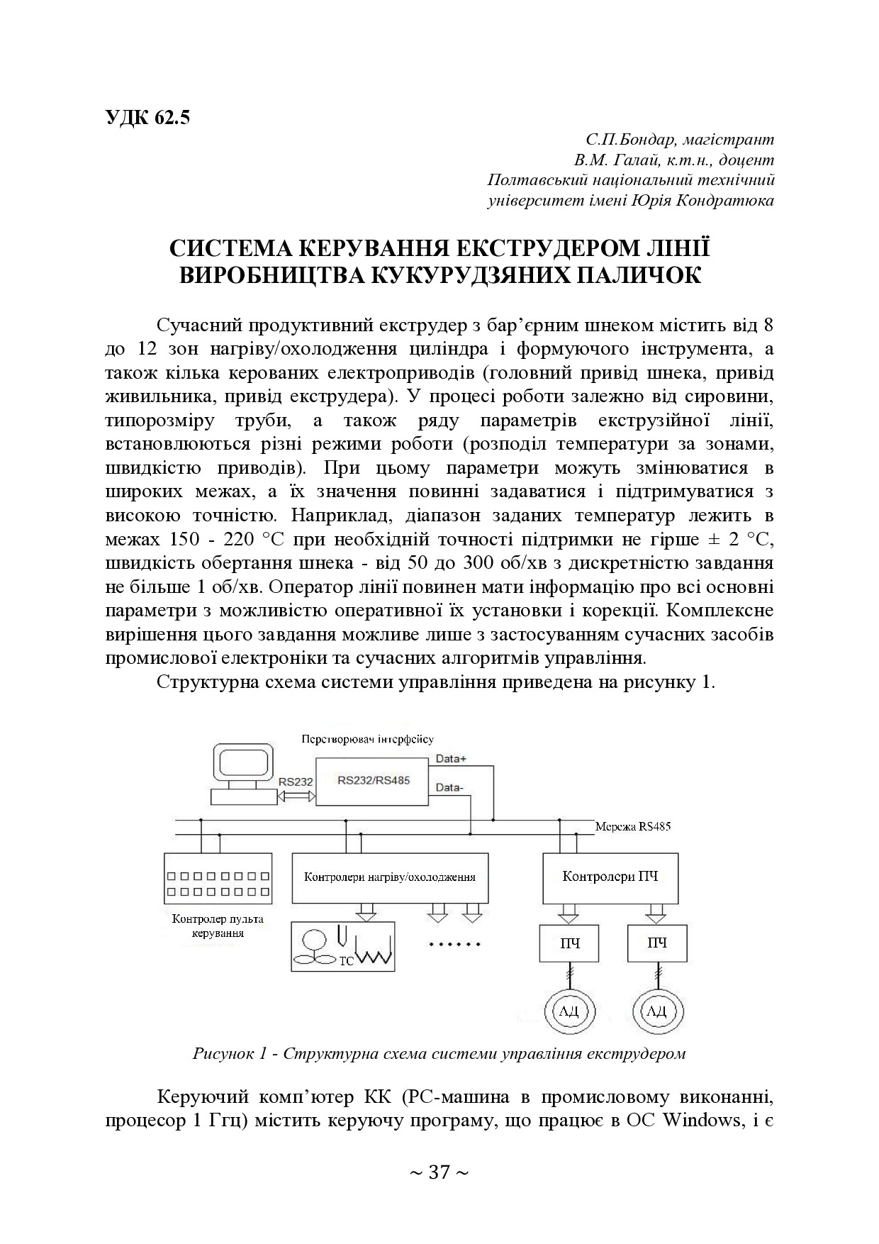 Система керувння екструдером лінії виробництва кукурудзяних паличок