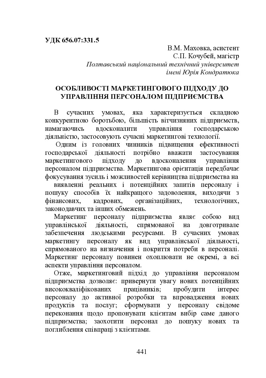 Особливості маркетингового підходу до управління персоналом підприємства