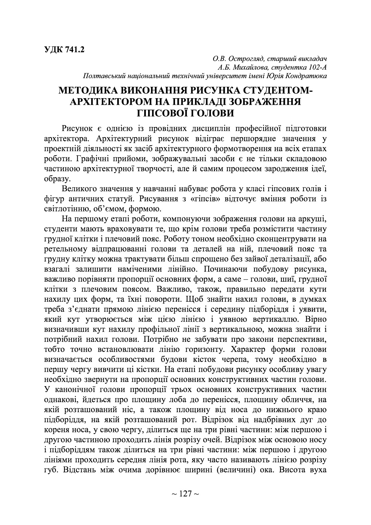 Методика виконання рисунка студентом-архітектором на прикладі зображення гіпсової голови