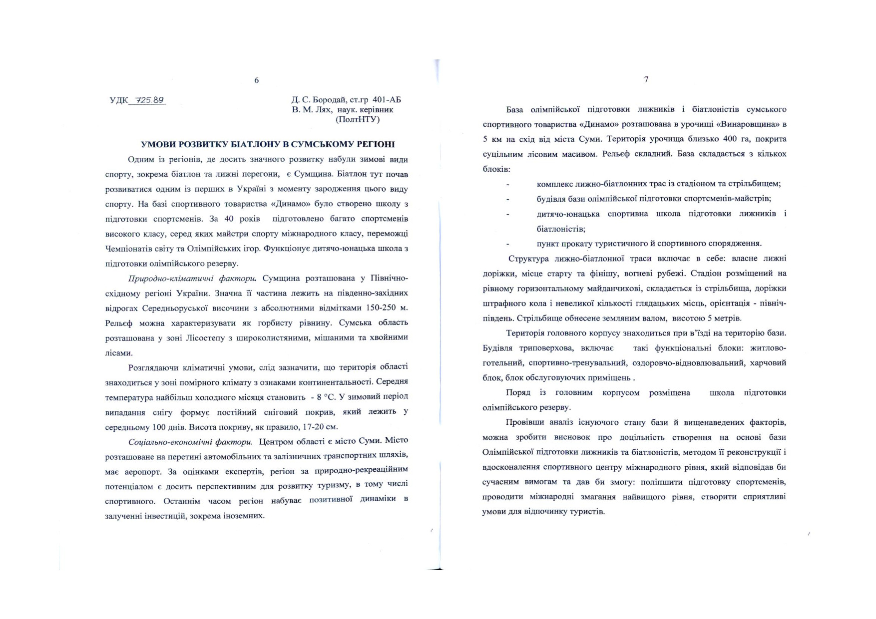 Умови розвитку біатлону в Сумському регіоні