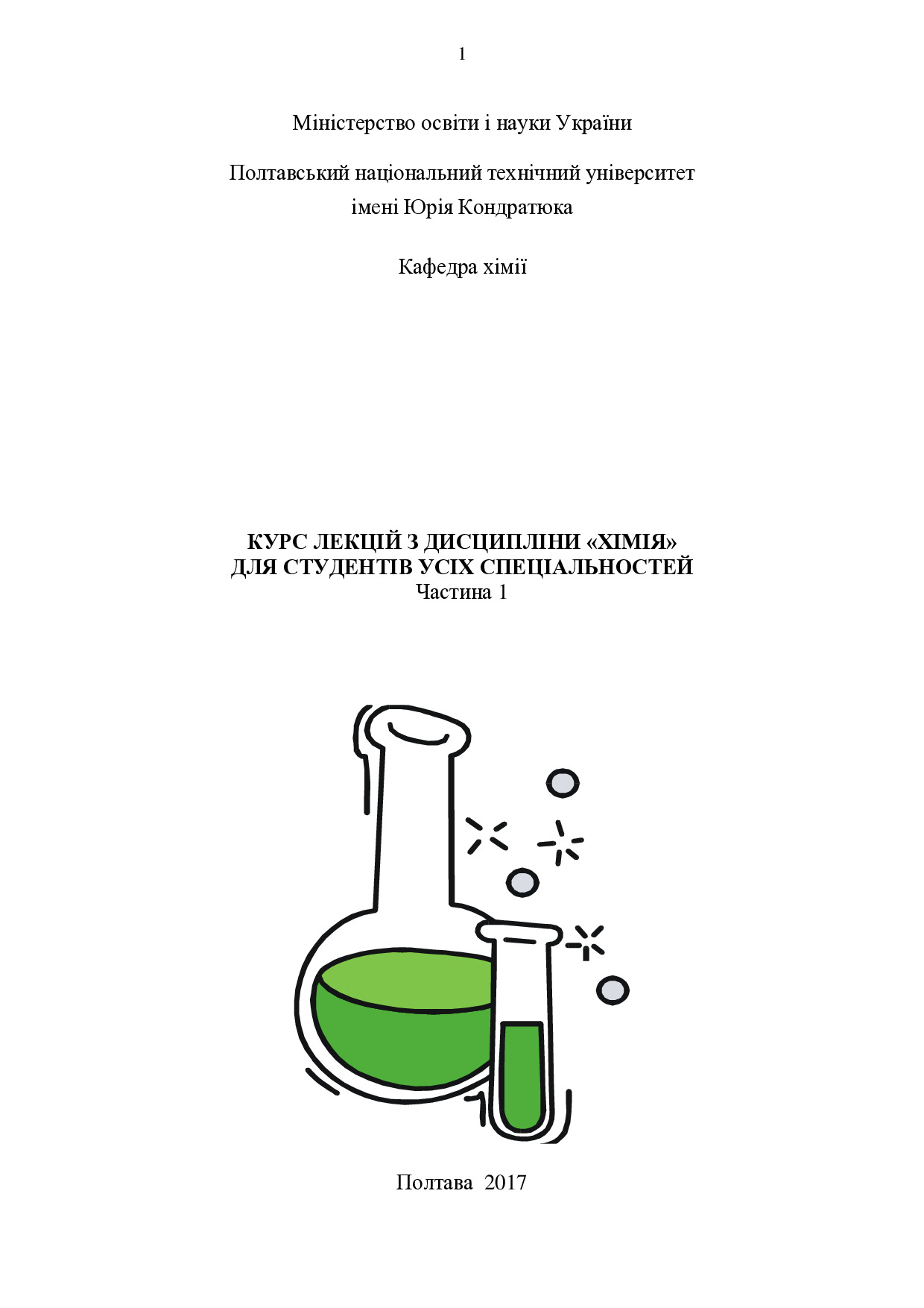 Курс лекцій з дисципліни "Хімія" для студентів усіх спеціальностей. Частина 1