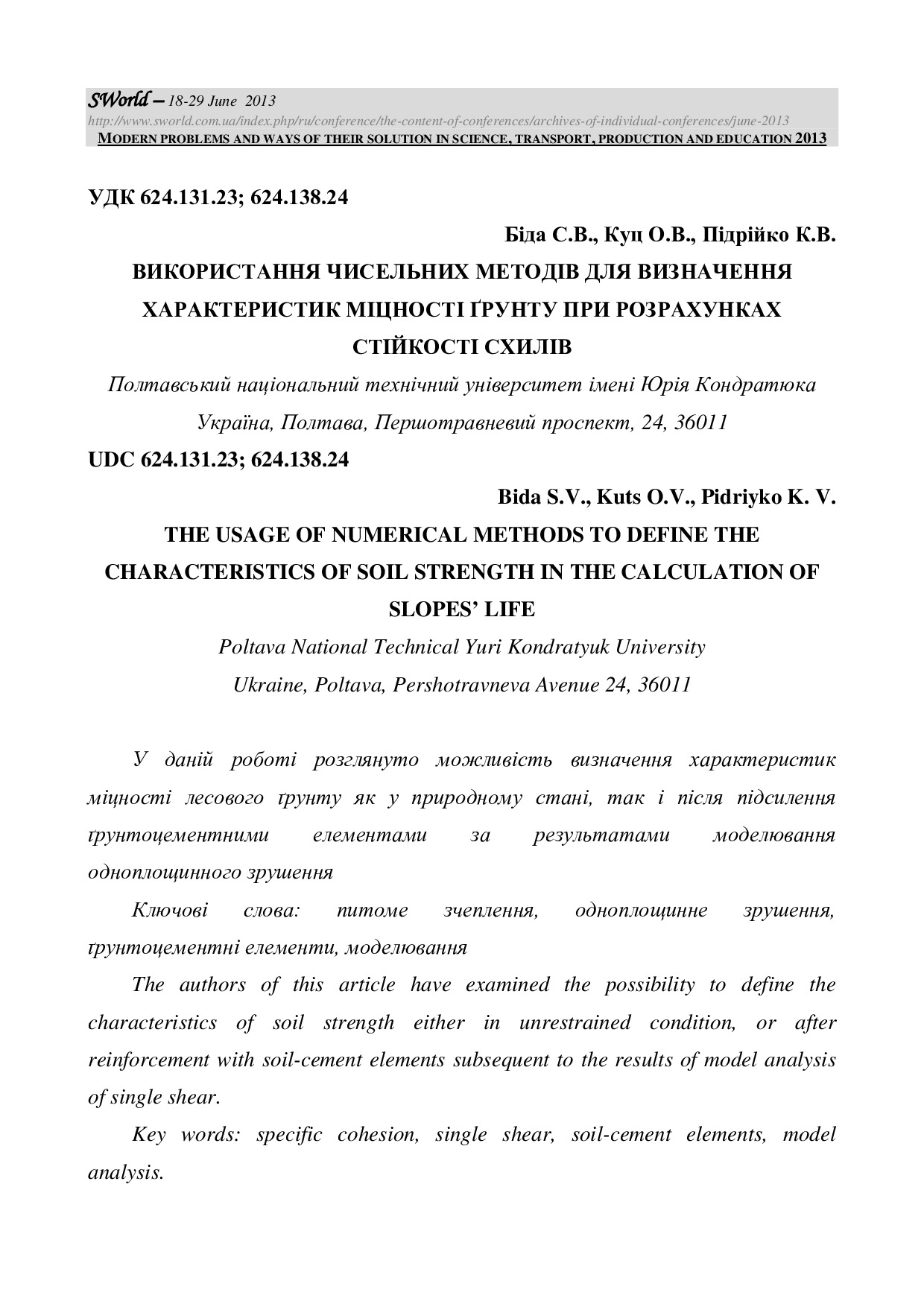 Використання чисельних методів для визначення характеристик міцності ґрунту при розрахунках стійкості схилів