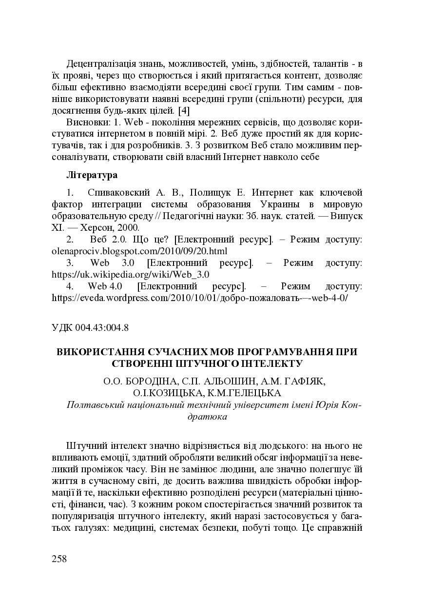 Використання сучасних мов програмування при створенні штучного інтелекту