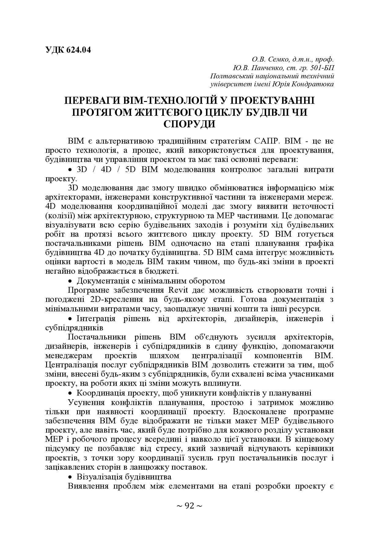 Переваги ВІМ-технологій у проектуванні протягом життєвого циклу будівлі чи споруди