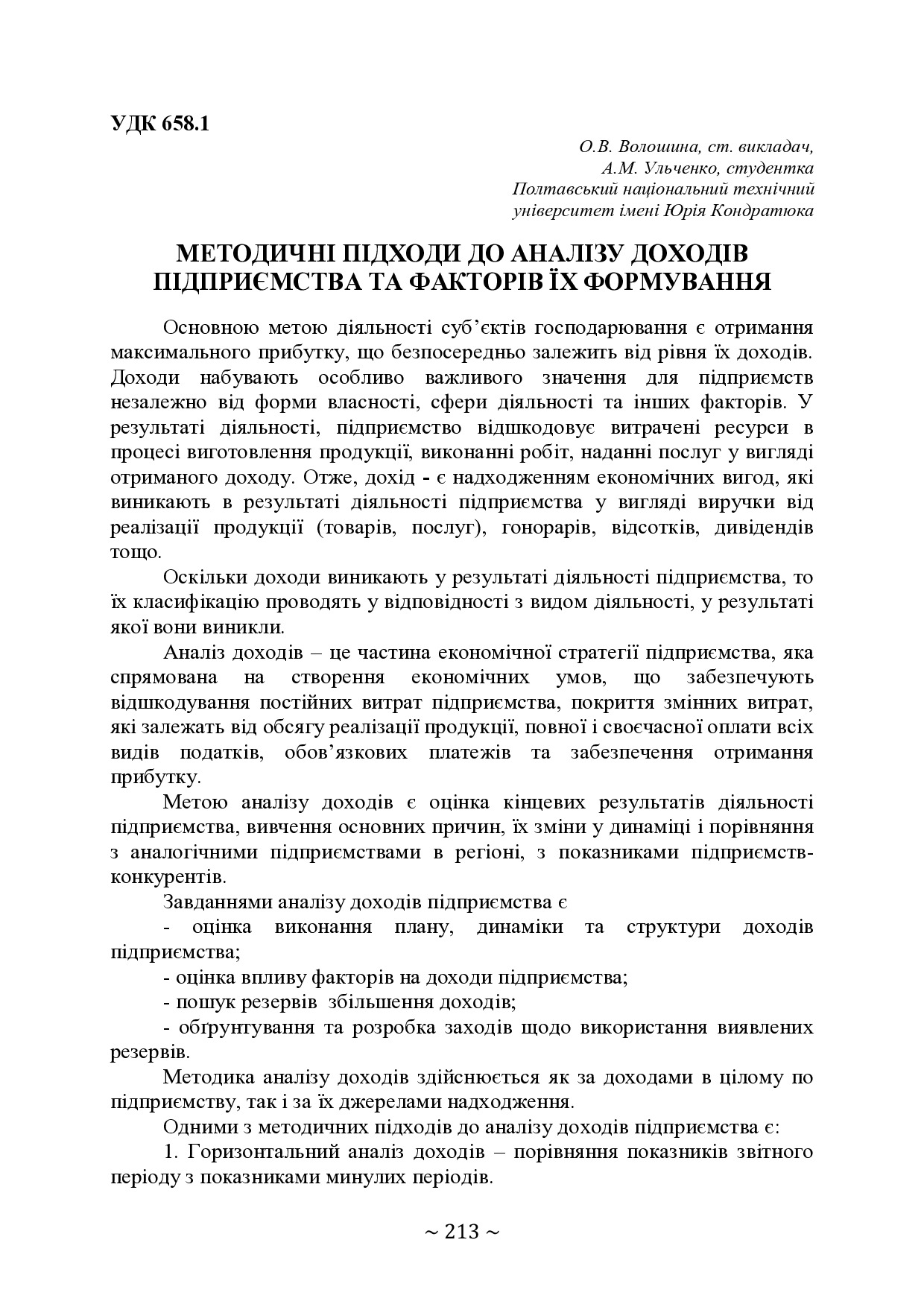 Методичні підходи до аналізу доходів підприємства та факторів їх формування