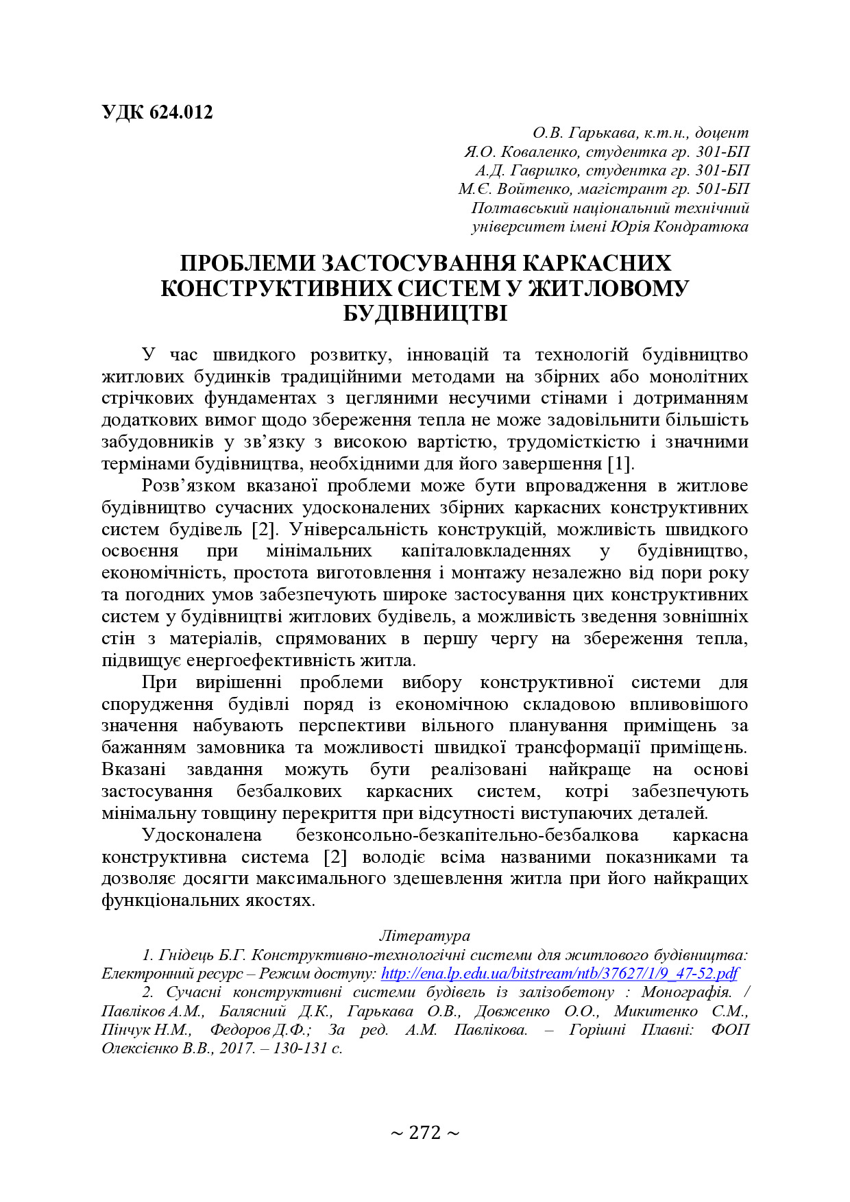 Проблеми застосування каркасних конструктивних систем у житловому будівництві