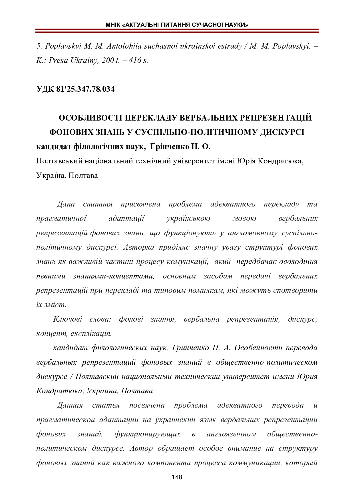 Особливості перекладу вербальних репрезентацій фонових знань у суспільно-політичному дискурсі