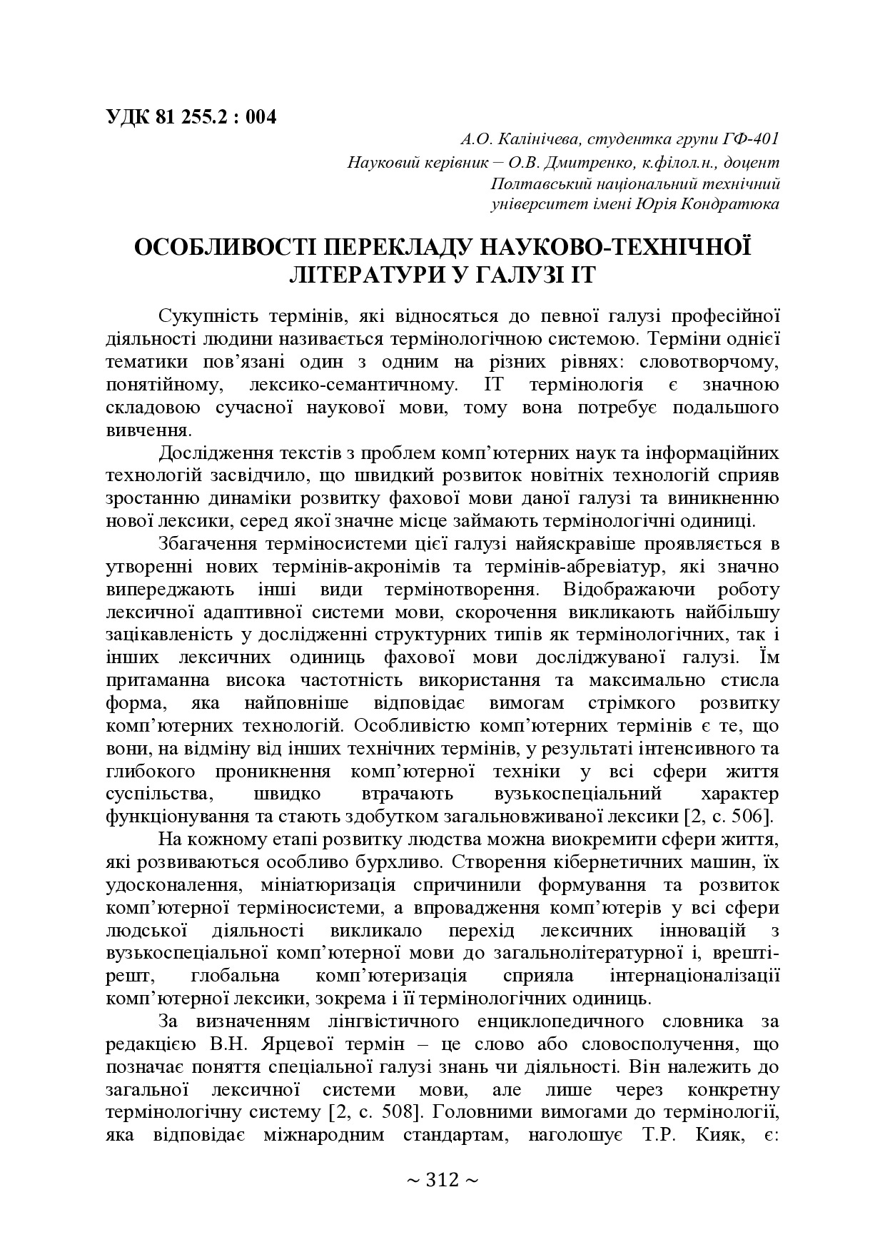 Особливості перекладу науково-технічної літератури у галузі ІТ