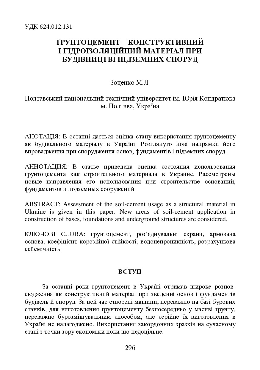 Грунтоцемент – конструктивний і гідроізоляційний матеріал при будівництві підземних споруд