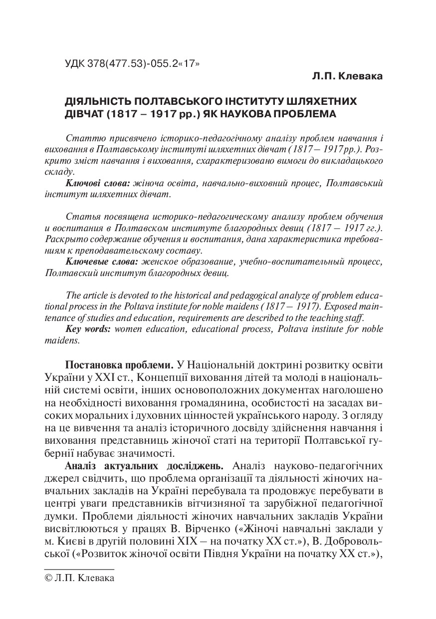 Діяльність Полтавського інституту шляхетних дівчат (1817–1917 рр.) як наукова проблема