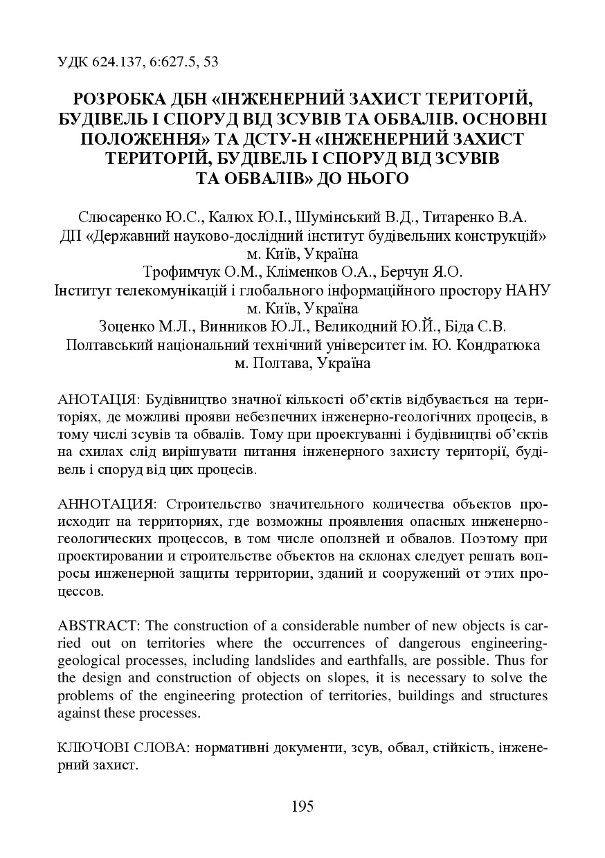 Розробка ДБН "Інженерний захист територій, будівель і споруд від зсувів та обвалів. Основні положення" та ДСТУ-Н Б "Інженерний захист територій, будинків і споруд від зсувів та обвалів" до нього