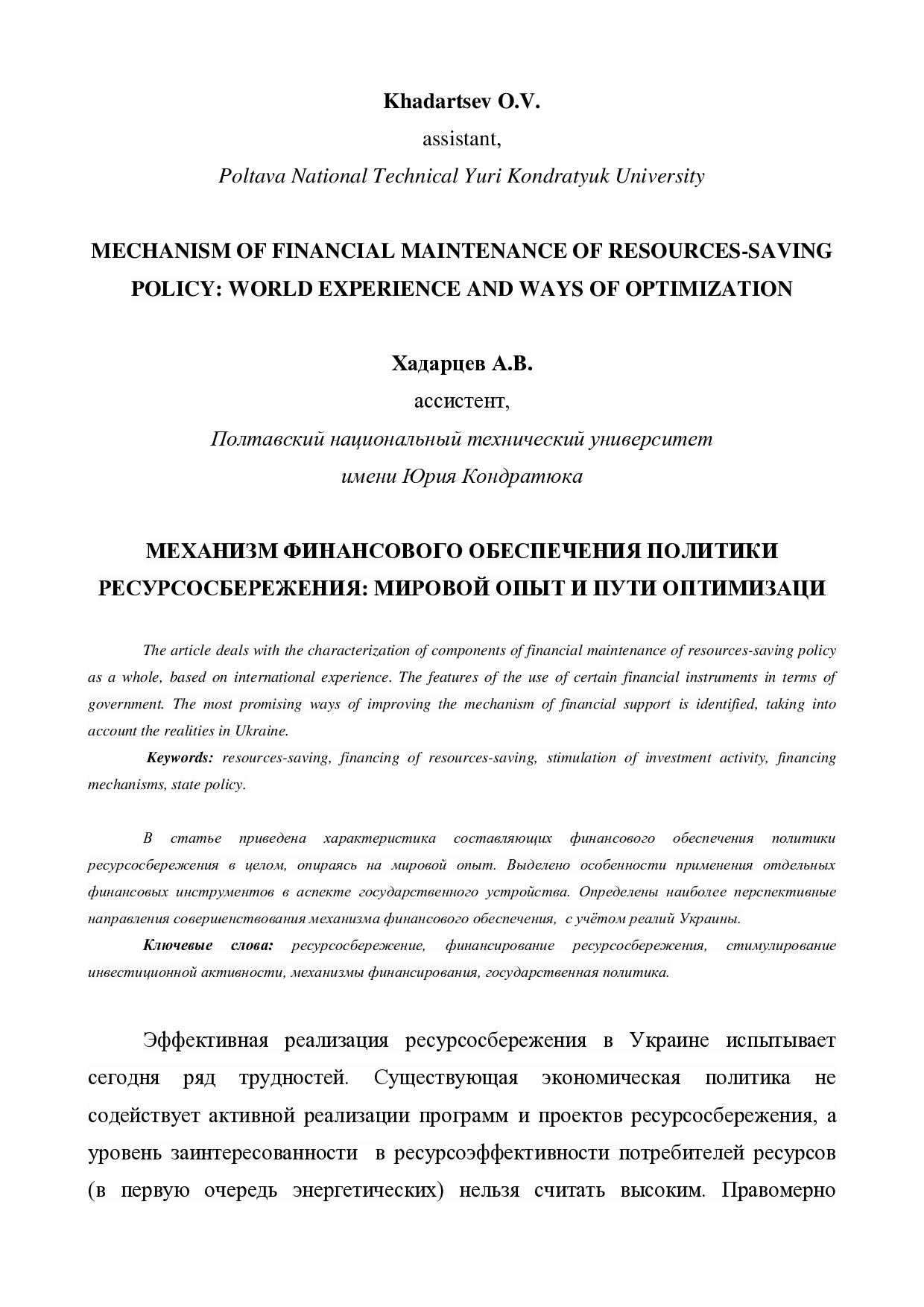 Механизм финансового обеспечения политики ресурсосбережения: мировой опыт и пути оптимизации
