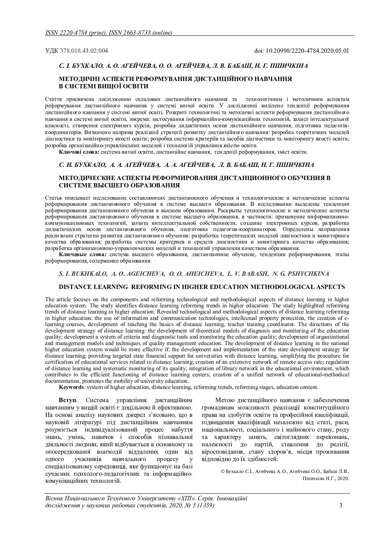 Методичні аспекти реформування дистанційного навчання в системі вищої освіти