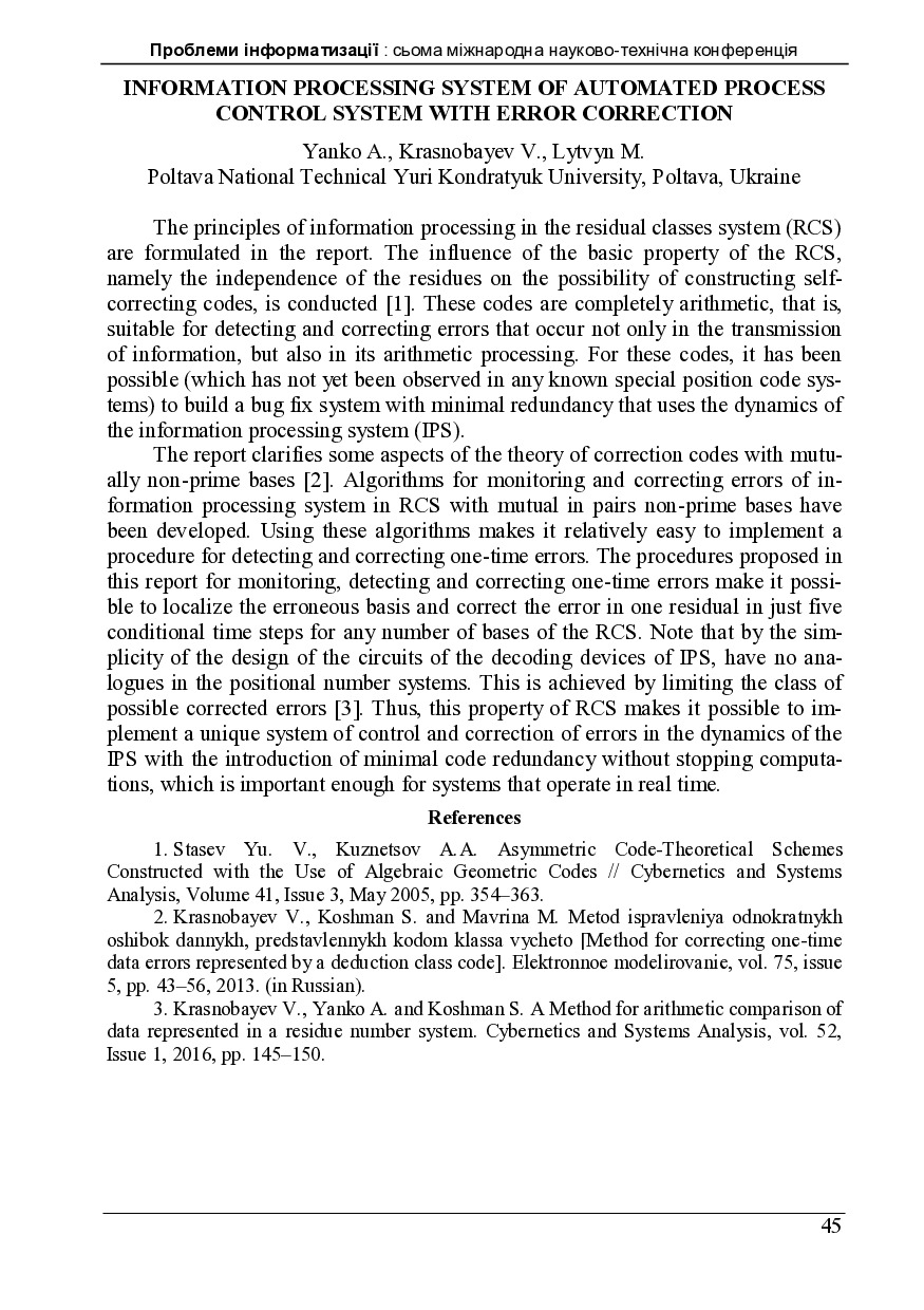 Information processing system of automated process control system with error correction
