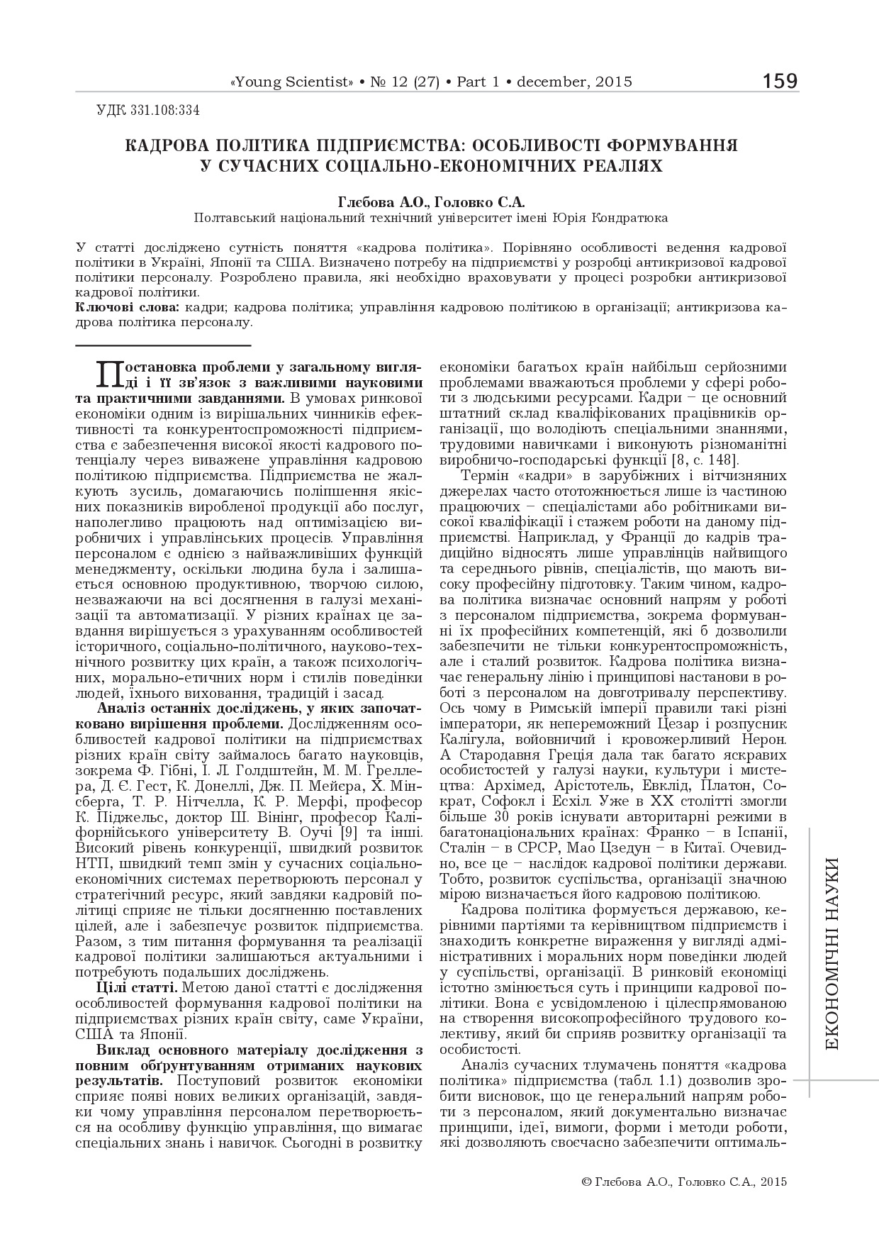 Кадрова політика підприємства: особливості формування у сучасних соціально-економічних реаліях