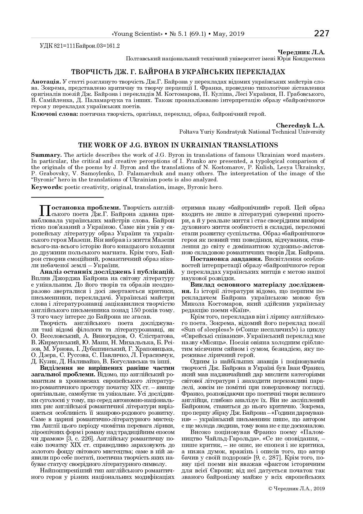 Творчість Дж. Г. Байрона в українських перекладах