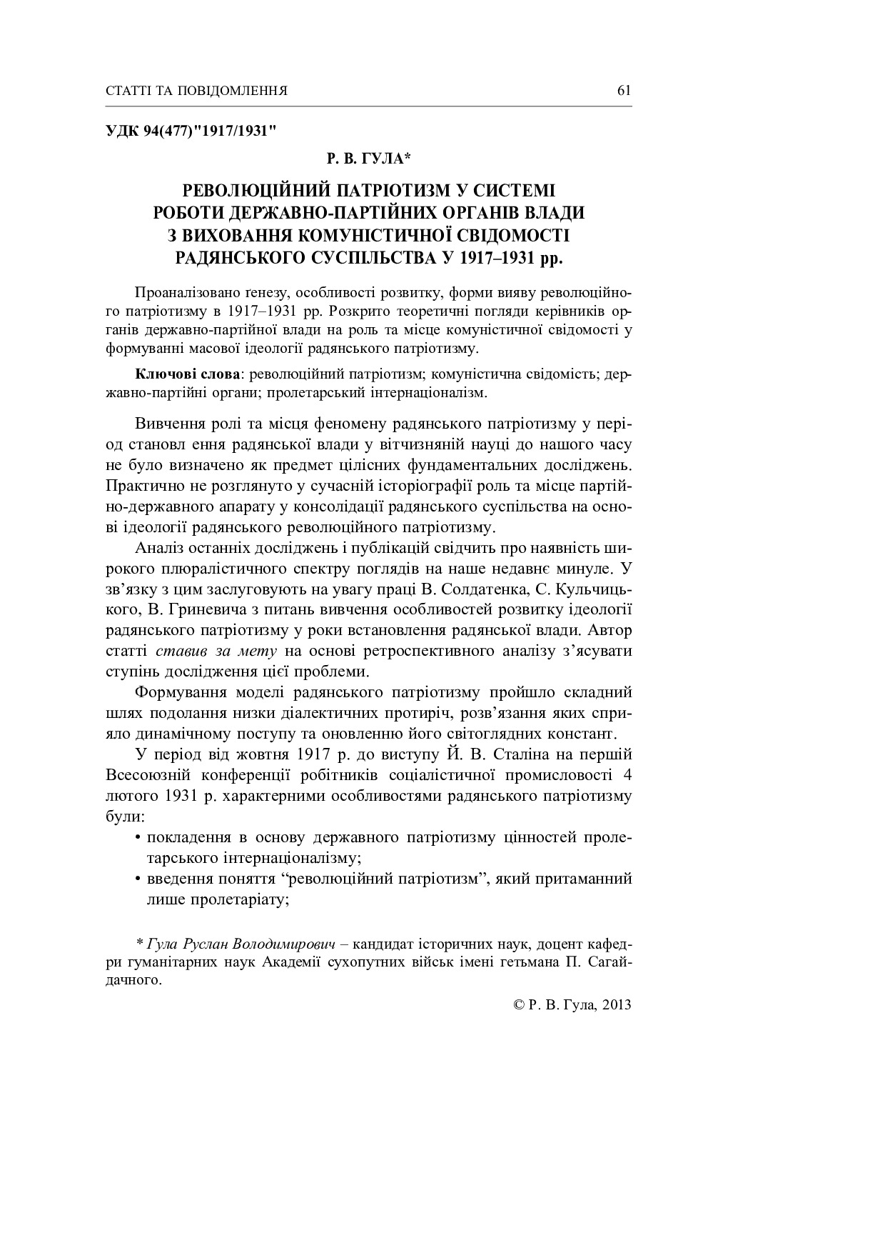 Революційний патріотизм у системі роботи державно-партійних органів влади з виховання комуністичної свідомості радянського суспільства у 1917–1931 рр.