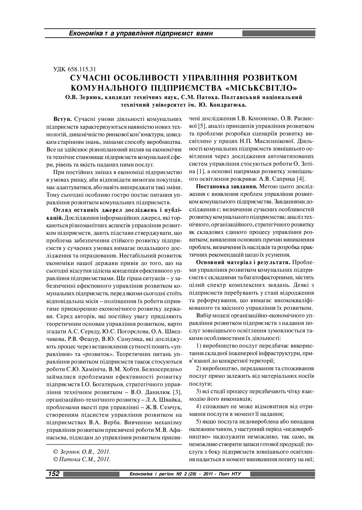 Сучасні особливості управління розвитком комунального підприємства "Міськсвітло"
