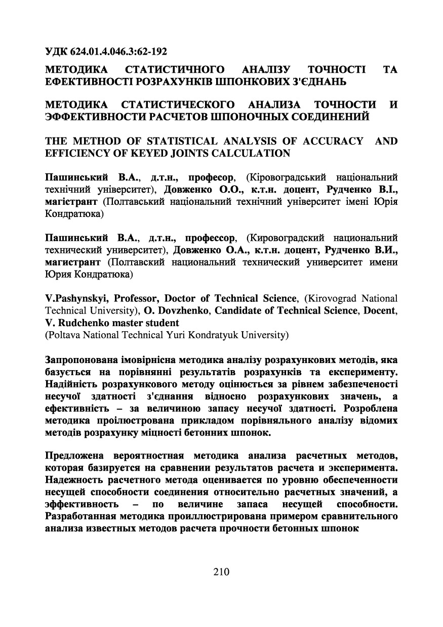 Методика статистичного аналізу точності та ефективності розрахунків шпонкових з'єднань