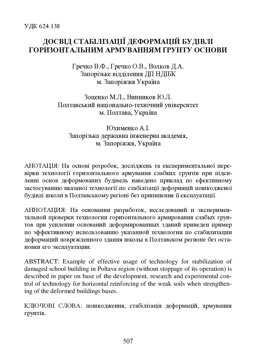 Досвід стабілізації деформацій будівлі горизонтальним армуванням ґрунту основи