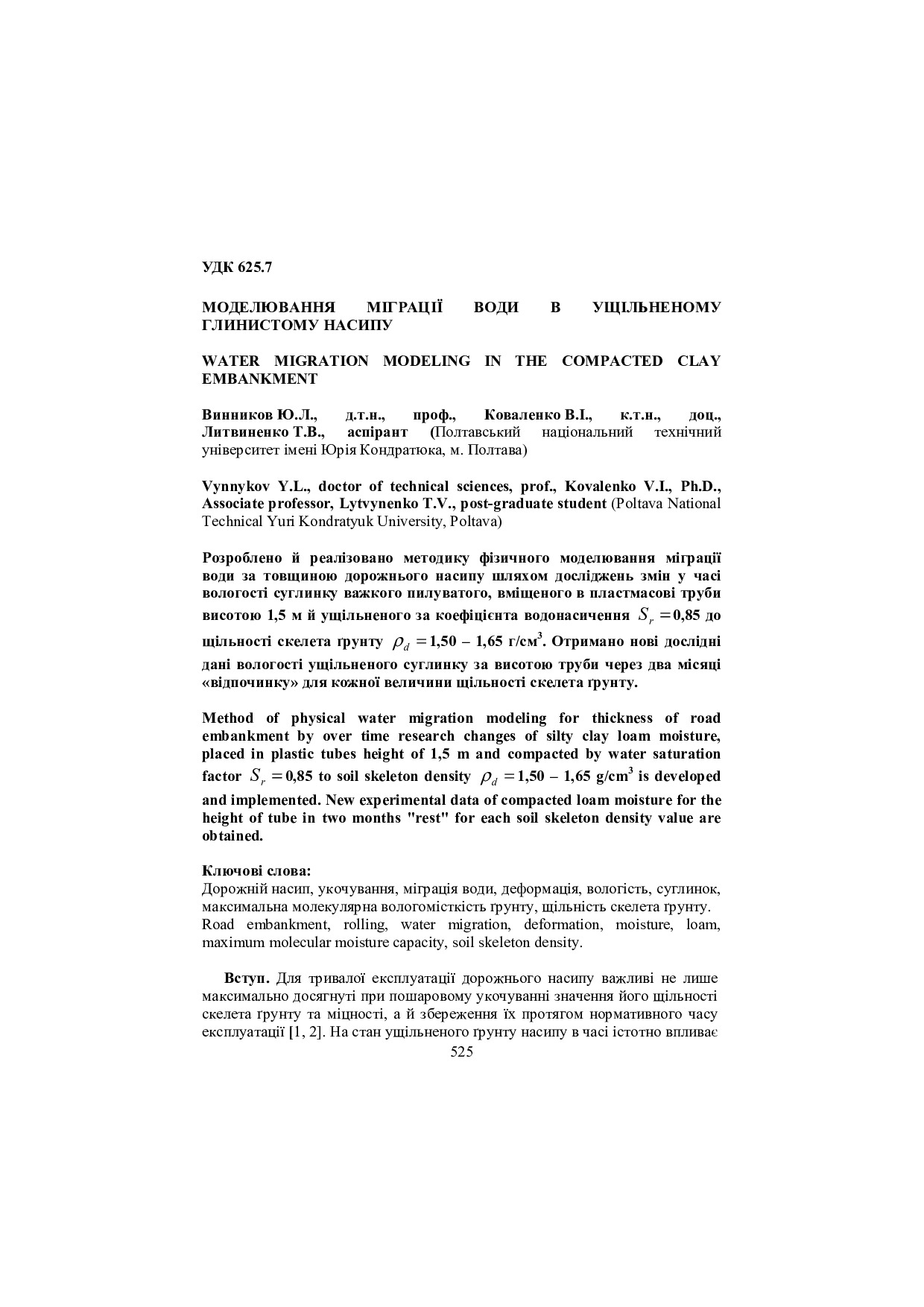 Моделювання міграції води в ущільненому глинистому насипу
