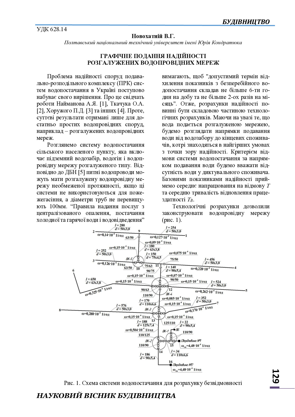Графічне подання надійності розгалужених водопровідних мереж