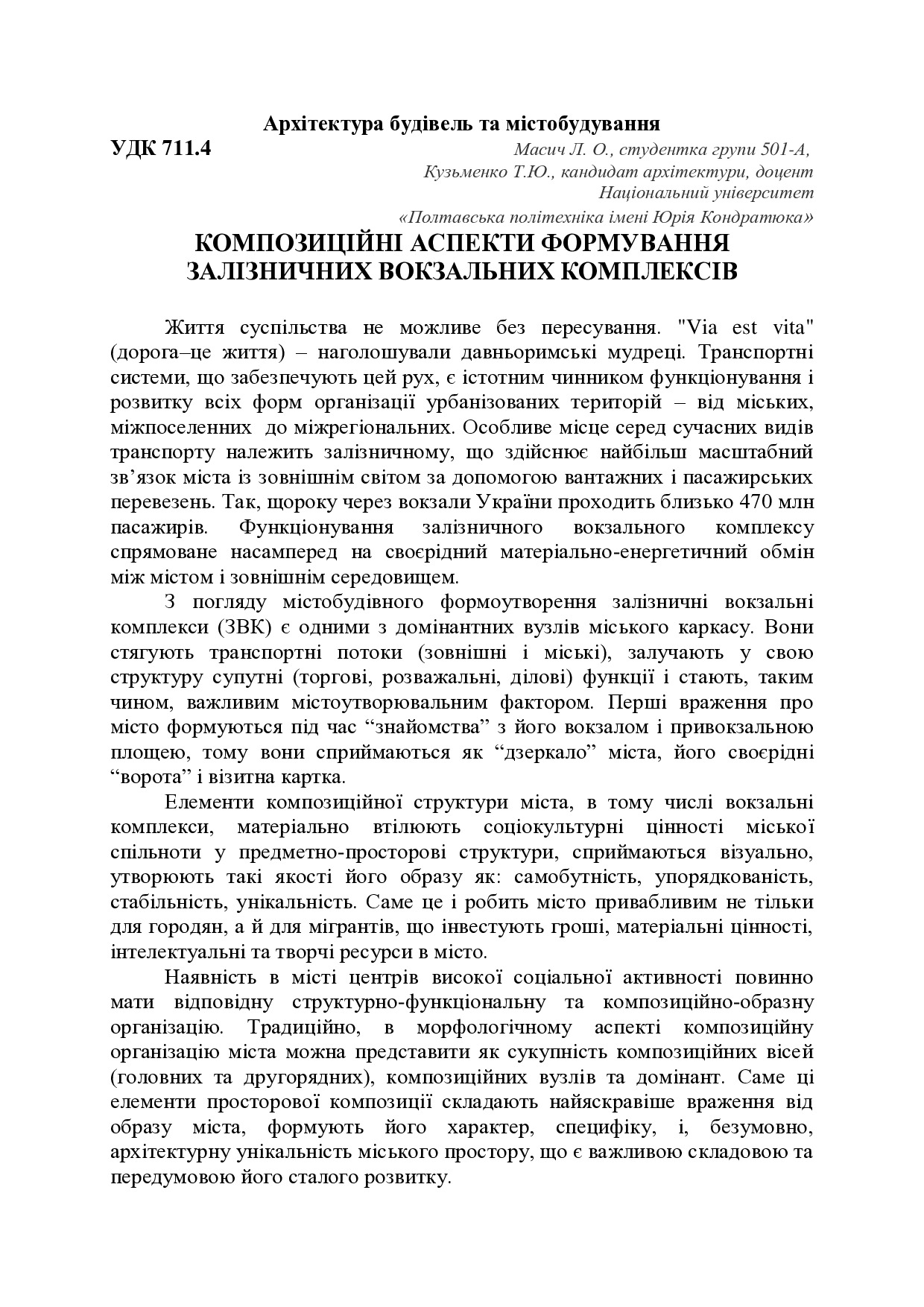 Композиційні аспекти формування залізничних вокзальних комплексів