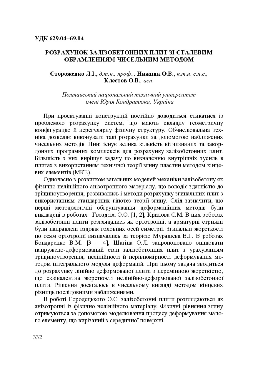 Розрахунок залізобетонних плит зі сталевим обрамленням чисельним методом