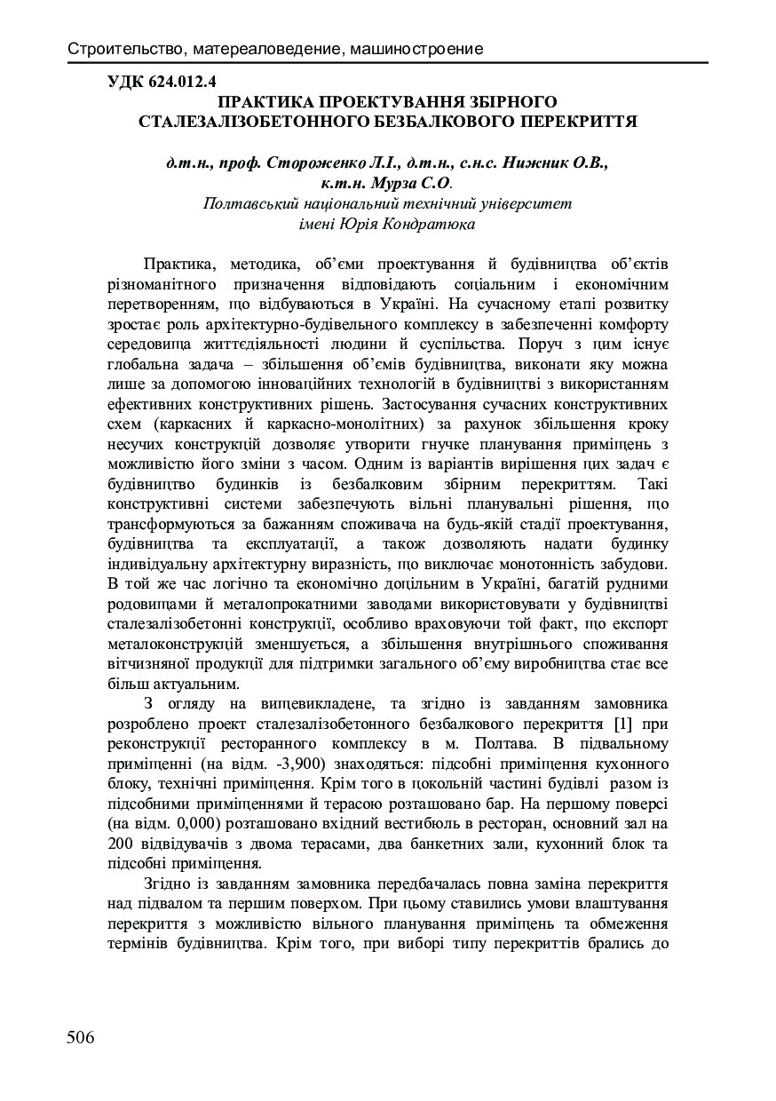 Практика проектування збірного сталезалізобетонного безбалкового перекриття