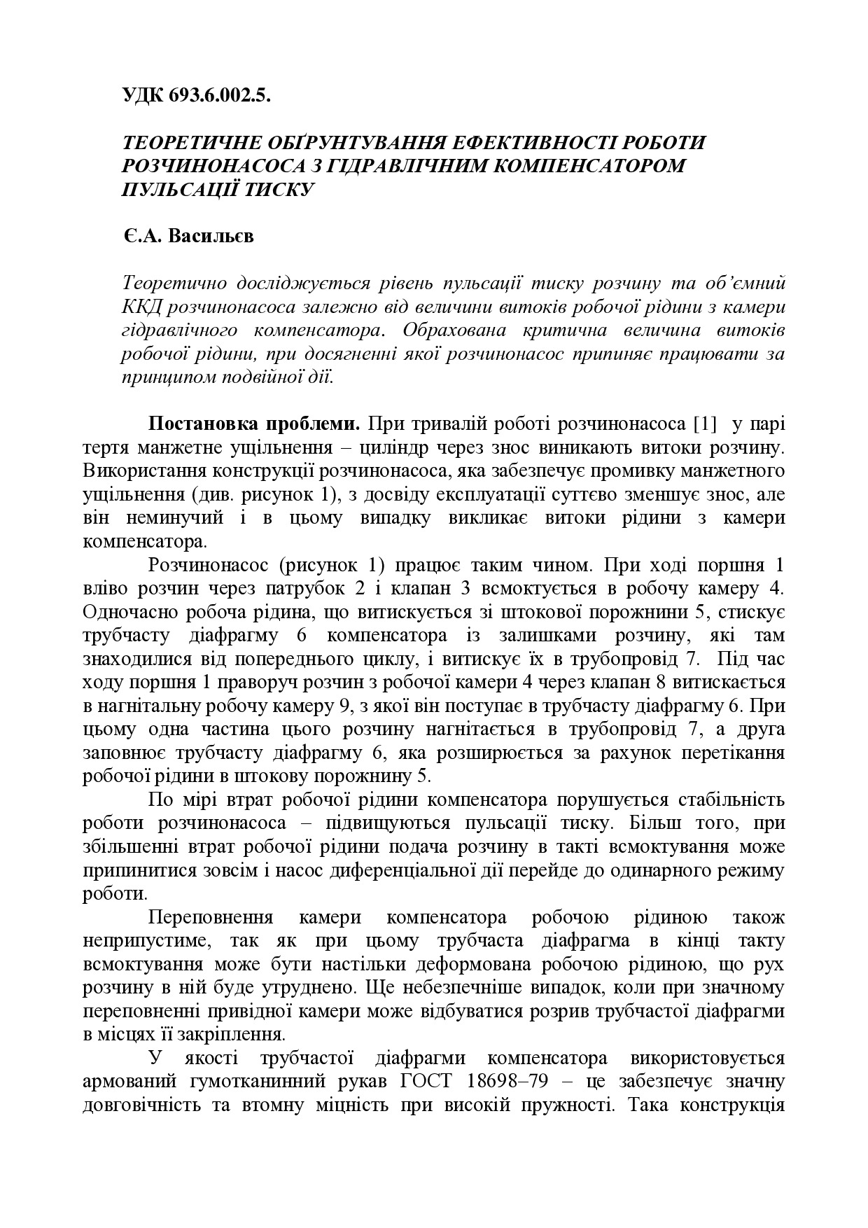 Теоретичне обґрунтування ефективності роботи розчинонасоса з гідравлічним компенсатором пульсації тиску