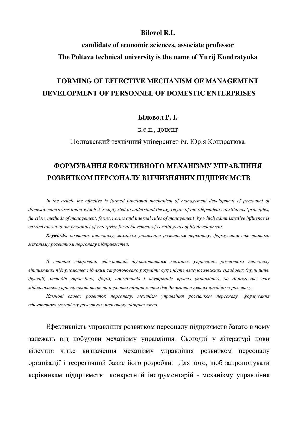Формування ефективного механізму управління розвитком персоналу вітчизняних підприємств