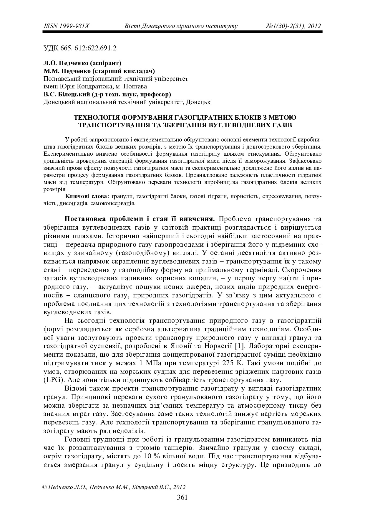 Технологія формування газогідратних блоків з метою транспортування та зберігання вуглеводневих газів