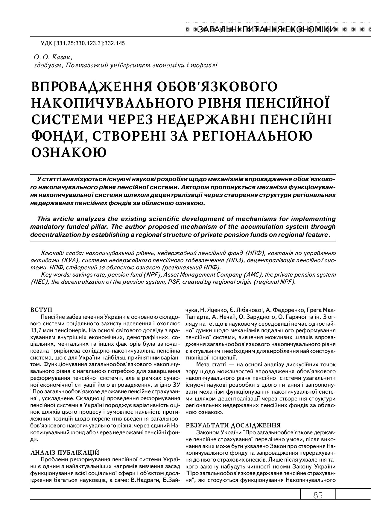 Впровадження обов’язкового накопичувального рівня пенсійної системи через недержавні пенсійні фонди, створені за регіональною ознакою