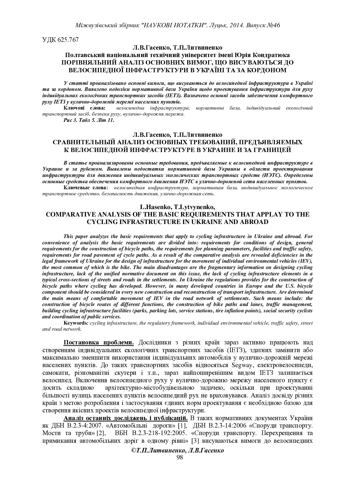 Порівняльний аналіз основних вимог, що висуваються до велосипедної інфраструктури в Україні та за кордоном